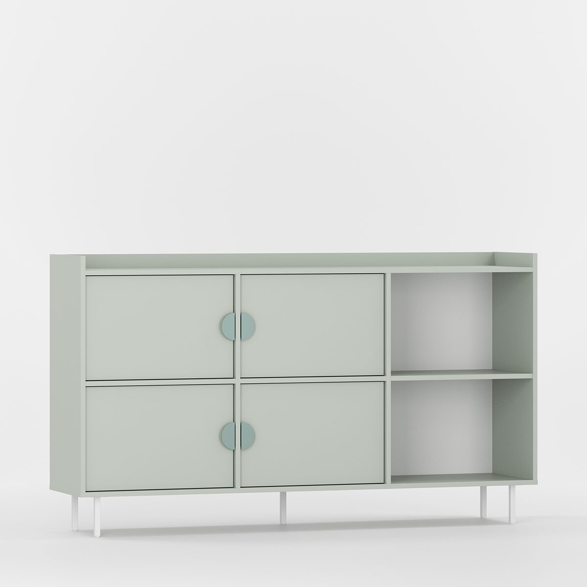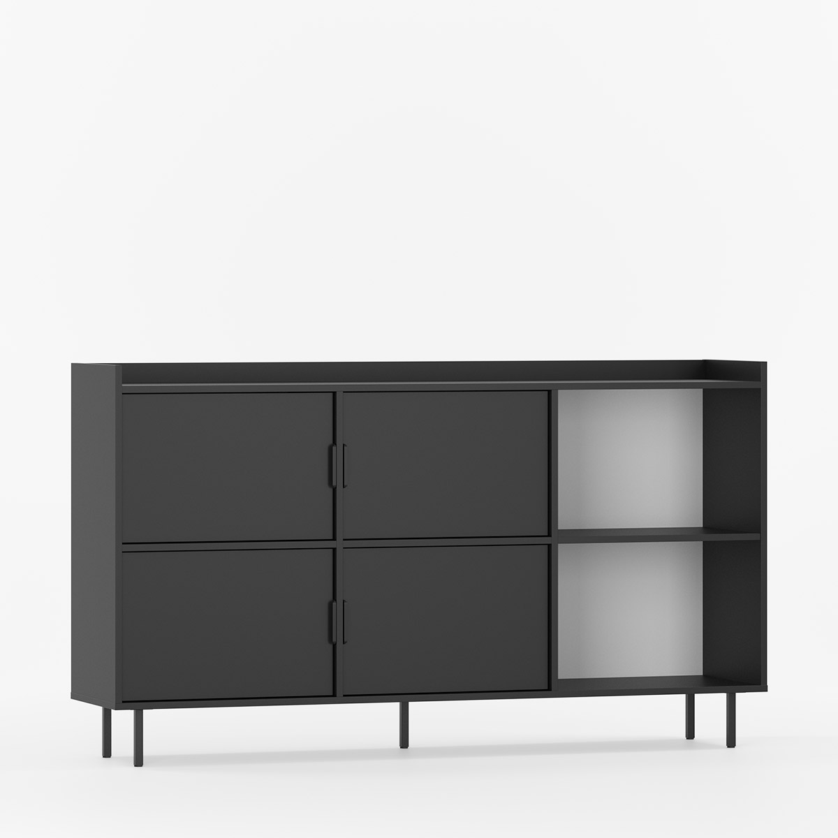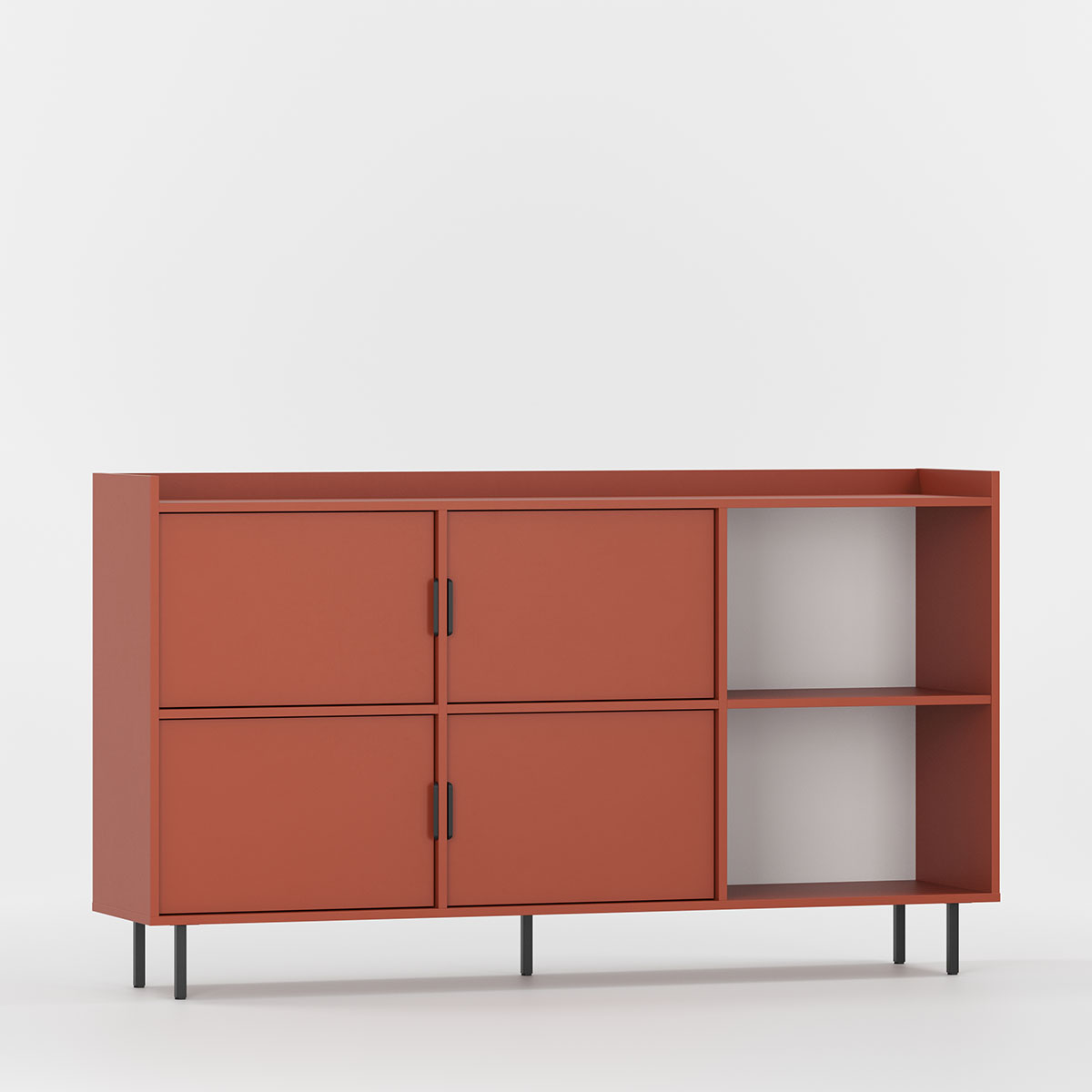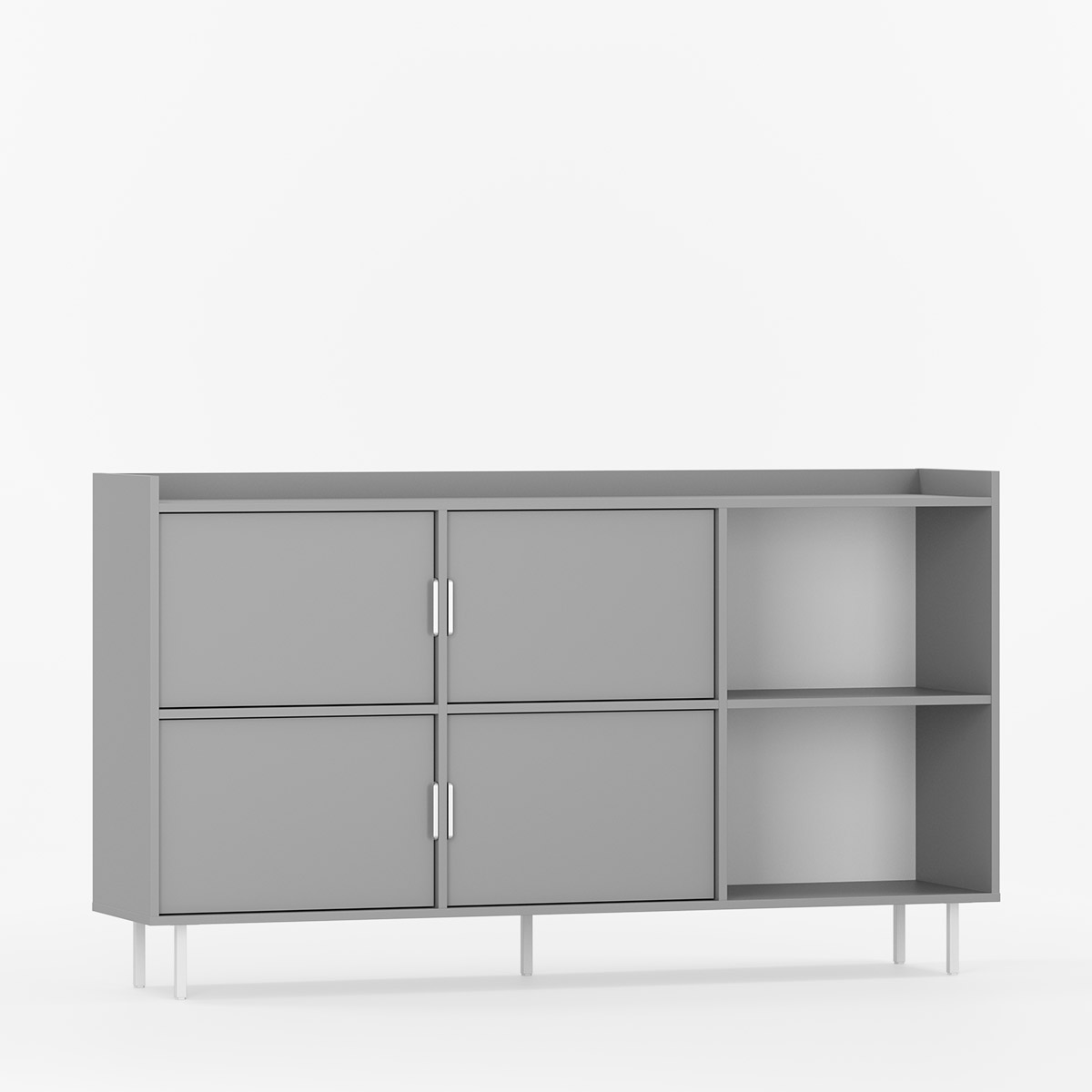 SIGI SRPRO2 er et større oppbevaringsmøbel skapt til rom med behov for systematisk orden og fleksibel inndeling. Halvåpen 3-seksjons konstruksjon kombinerer åpne hyller og lukkede rom bak dører.