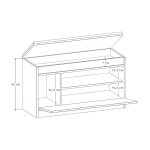 Bak døren skjuler det seg et rom med justerbar hylle, perfekt for å organisere sko og tilbehør. Det utfreste grepet fungerer både som håndtak og ventilasjon, og bidrar til å holde fottøyet tørt og friskt. Sokkelkonstruksjonen gir benken et rent preg uten synlige ben, samtidig som den står stødig på gulvet.