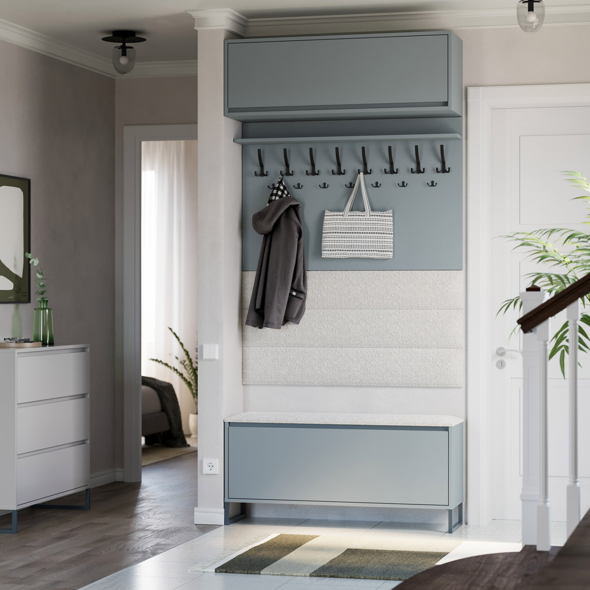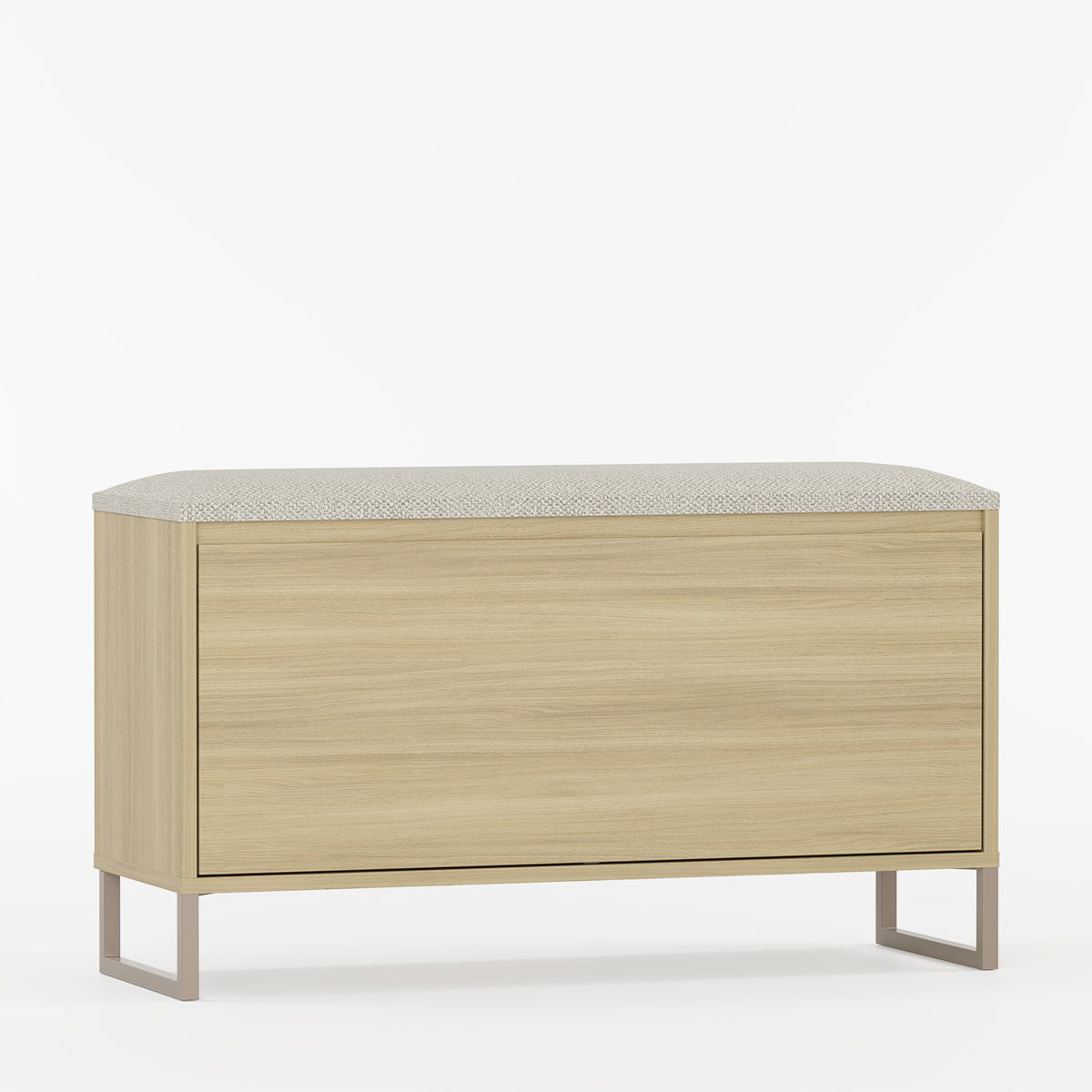 ODIS SBD2 er en moderne skobenk fra ODIS-kolleksjonen, designet for å gjøre entréen både ryddig og innbydende. Den kombinerer praktisk skoopbevaring med et komfortabelt sete, perfekt når du skal ta sko på eller av. De karakteristiske metallprofilene erstatter tradisjonelle ben og gir et lett, industrielt preg som enkelt kan matches med andre ODIS-moduler. Bak den gripefrie fronten skjuler det seg et romslig oppbevaringsområde med justerbar hylle, ideelt for flere par sko eller småting som hører til i gangen.