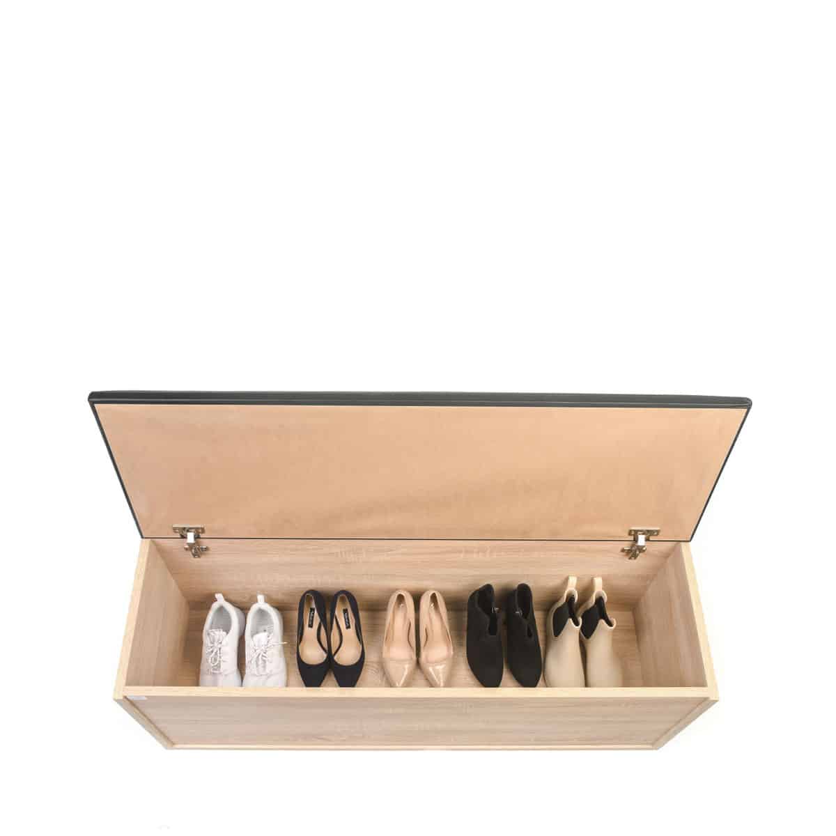 En skobenk som forener komfort med praktisk oppbevaring – skapt for Windes verdier om funksjonell eleganse og personlig tilpasning.
