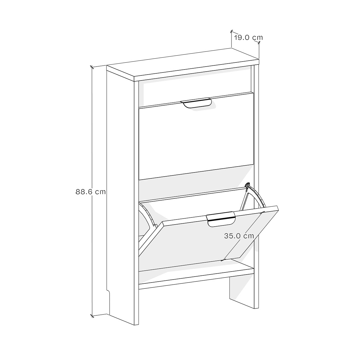 - Et praktisk skab med god plads til sko og en lille hylde øverst til at vise ting frem