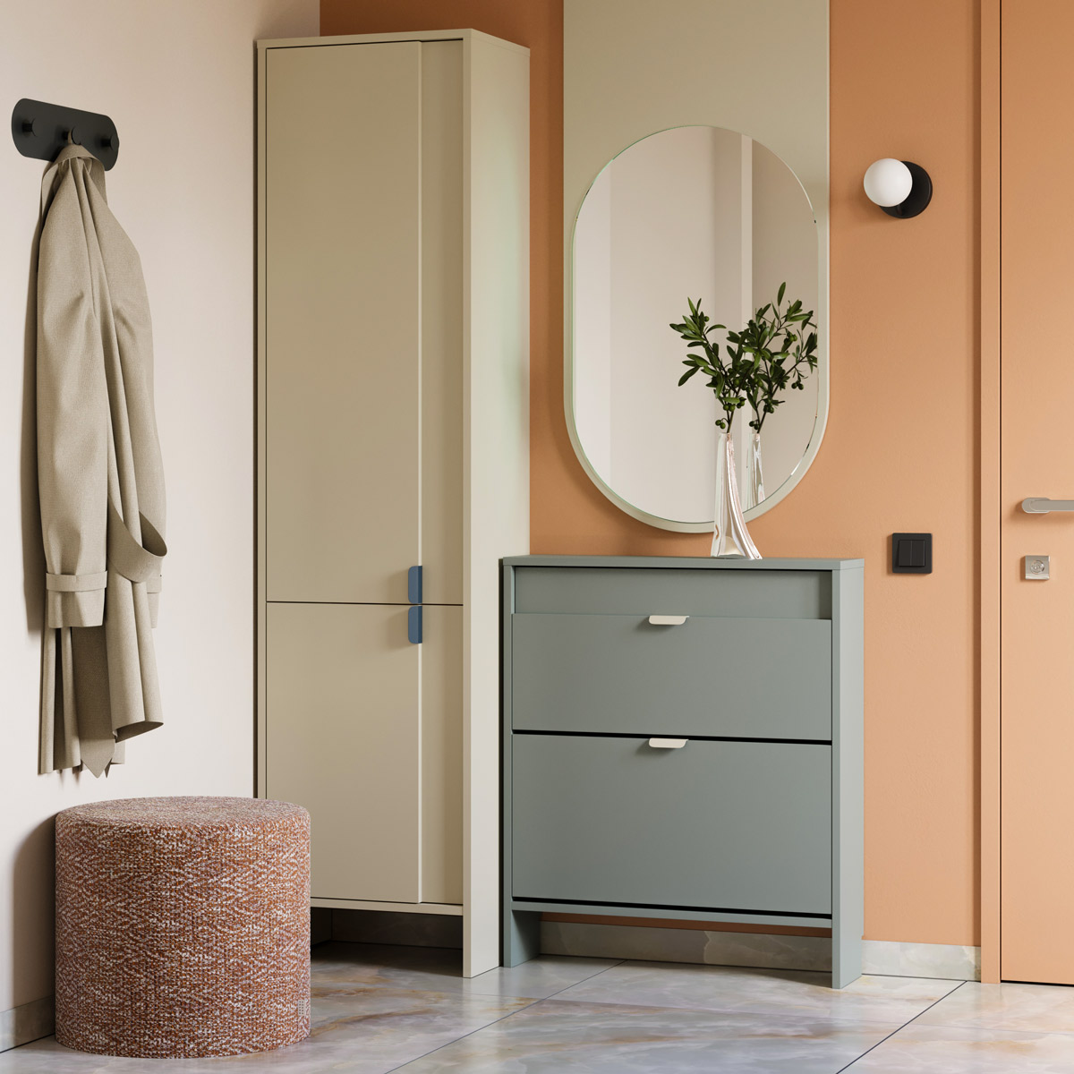 Skoskab LAYERS LAY17, designet af KABO&PYDO design studio, er et populært skab fra LAYERS-serien. Det har to farver på lågerne, som du selv kan vælge. Farverne er ofte forskellige. Skabet har enkle linjer, der giver det et moderne udseende.