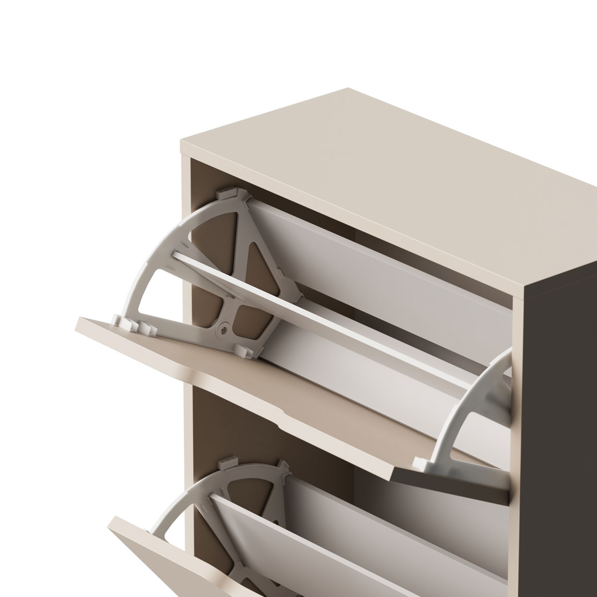 Bak frontene skjuler det seg romslig plass til skoene du vil ha lett tilgjengelig, men ute av syne. Skapet kan tilpasses i både farge og bredde, slik at det smelter naturlig inn i hjemmets stil og behov. Det veggmonterte designet frigjør gulvplass, gir et luftig inntrykk og gjør rengjøringen enklere.