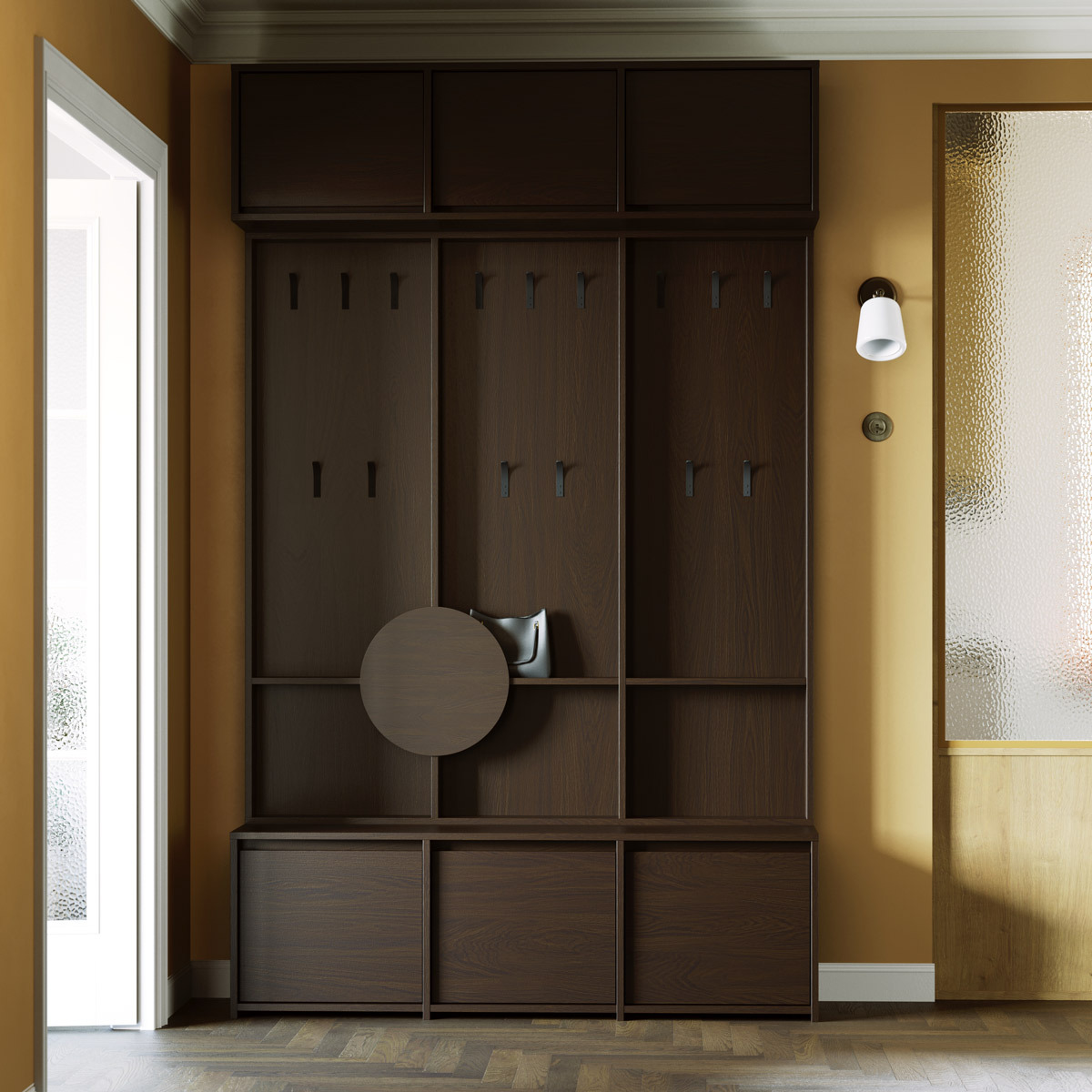 Et komplett entresett som forener rommelig funksjonalitet med harmonisk design – skapt for Windes’ filosofi om at orden og skjønnhet hører naturlig sammen i familiens hjem.
