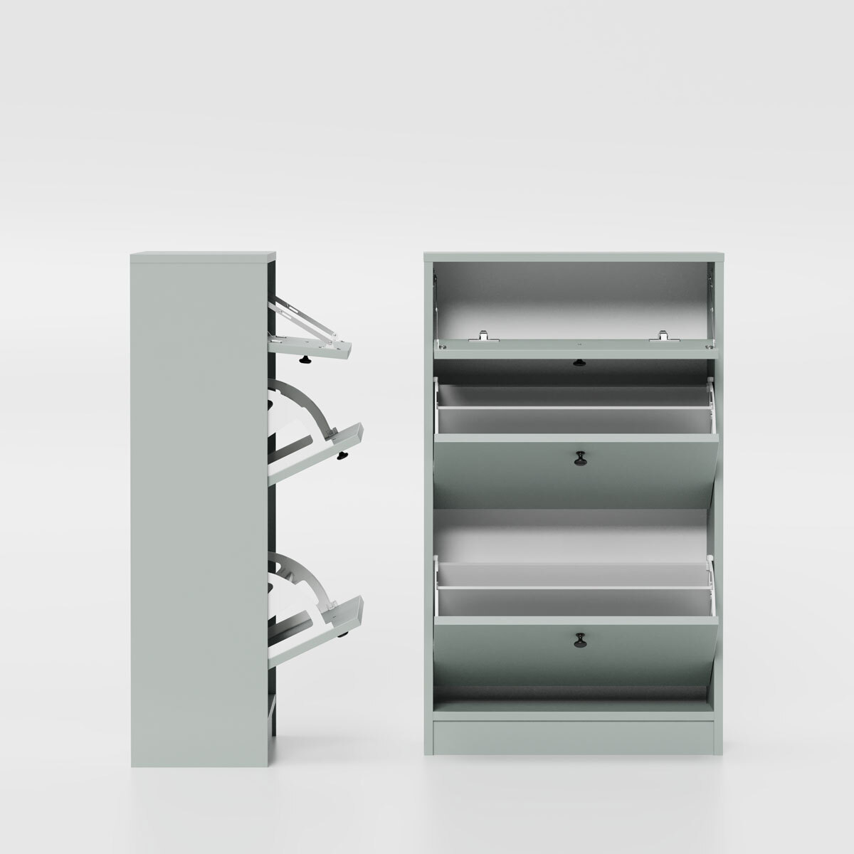 LANEA SBK4CDS skaper orden i entréen med sitt praktiske design. To kurver til sko og en vippelåge for nøkler, hundesnorer eller dokumenter gir alt du trenger ved inngangsdøren. Sokkelen løfter møbelet til en behagelig høyde.