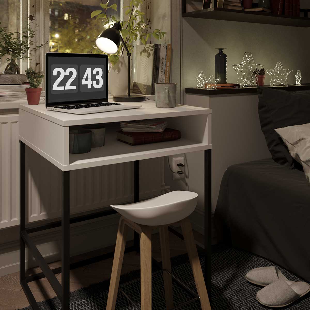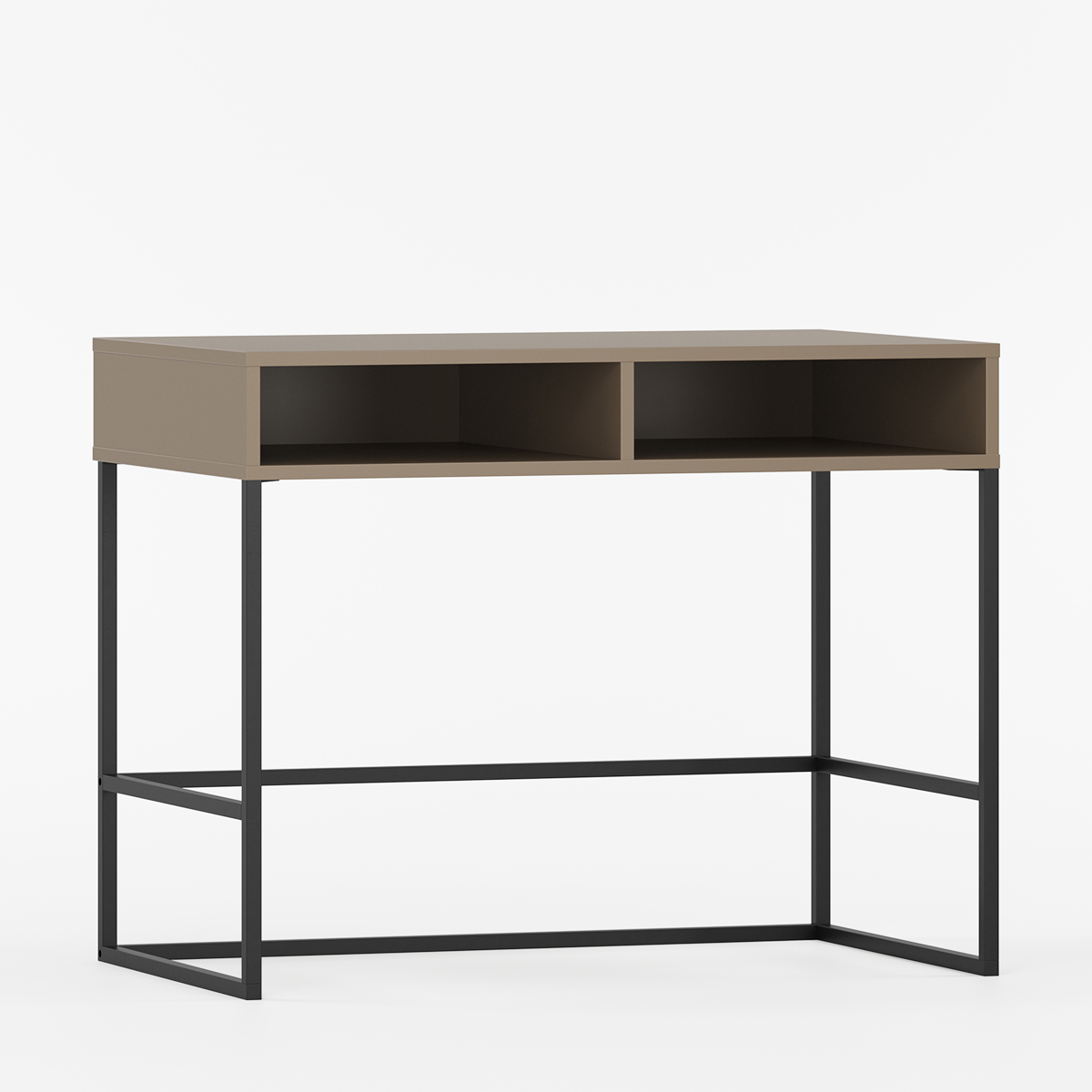 Minimalistisk skrivebord uten skuffer, ideelt for små rom.