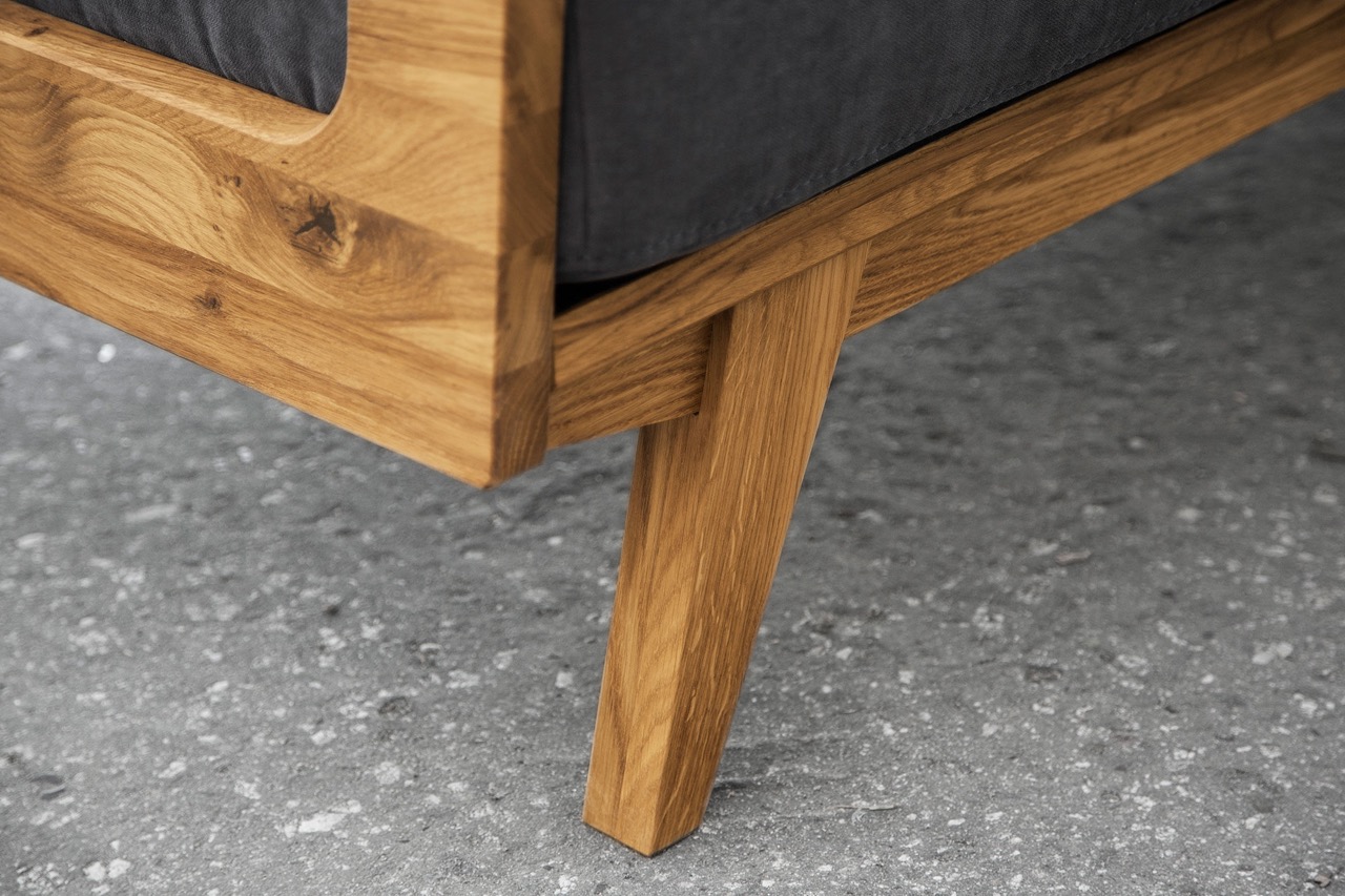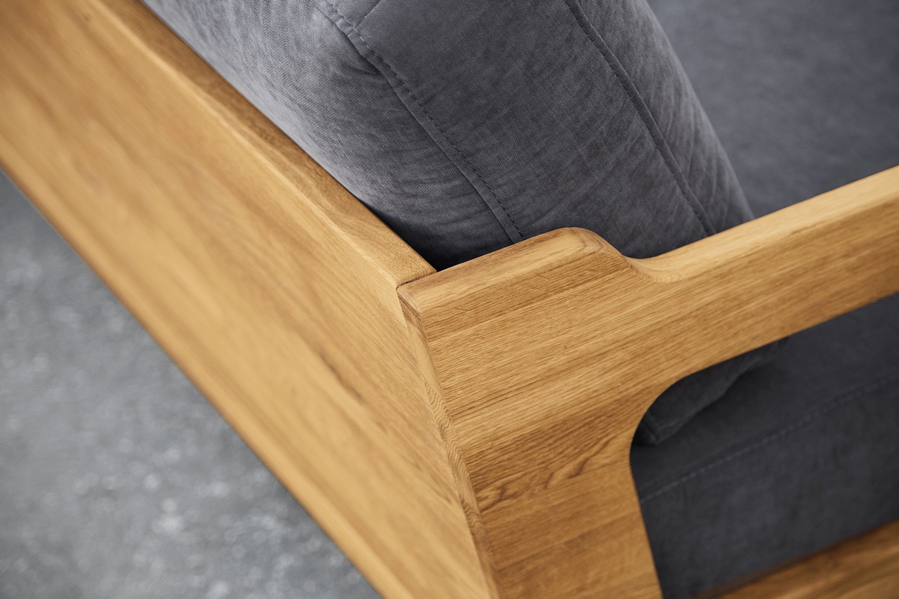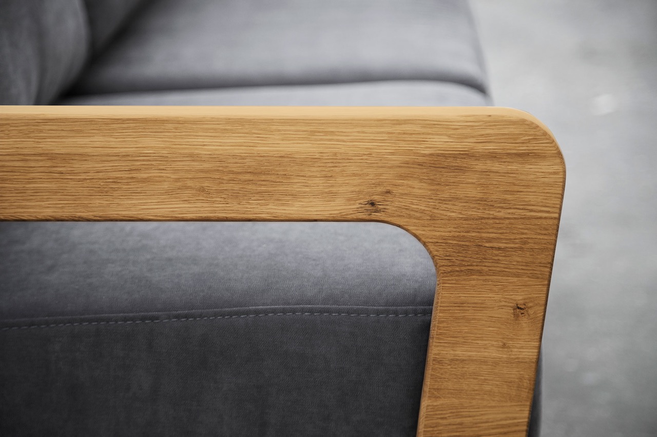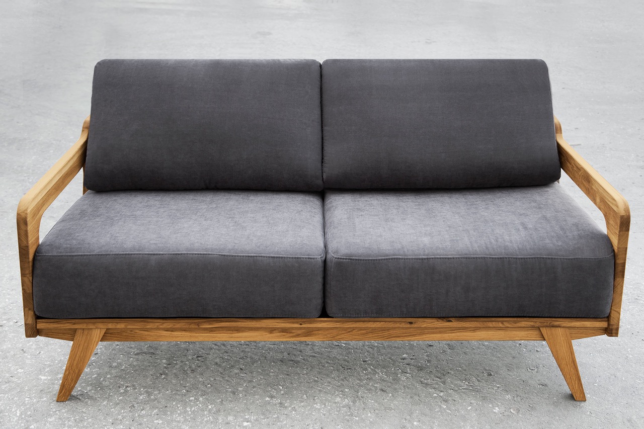 Sofa RETRO er en romslig 3-personers sofa som forener komfort og karakter i ett design. Den fås med polstring i flere farger, så du kan tilpasse uttrykket til ditt hjem og din stil. Stellet og armlenene i massivt tre tilfører varme og autentisitet, mens de myke putene sikrer høy komfort.