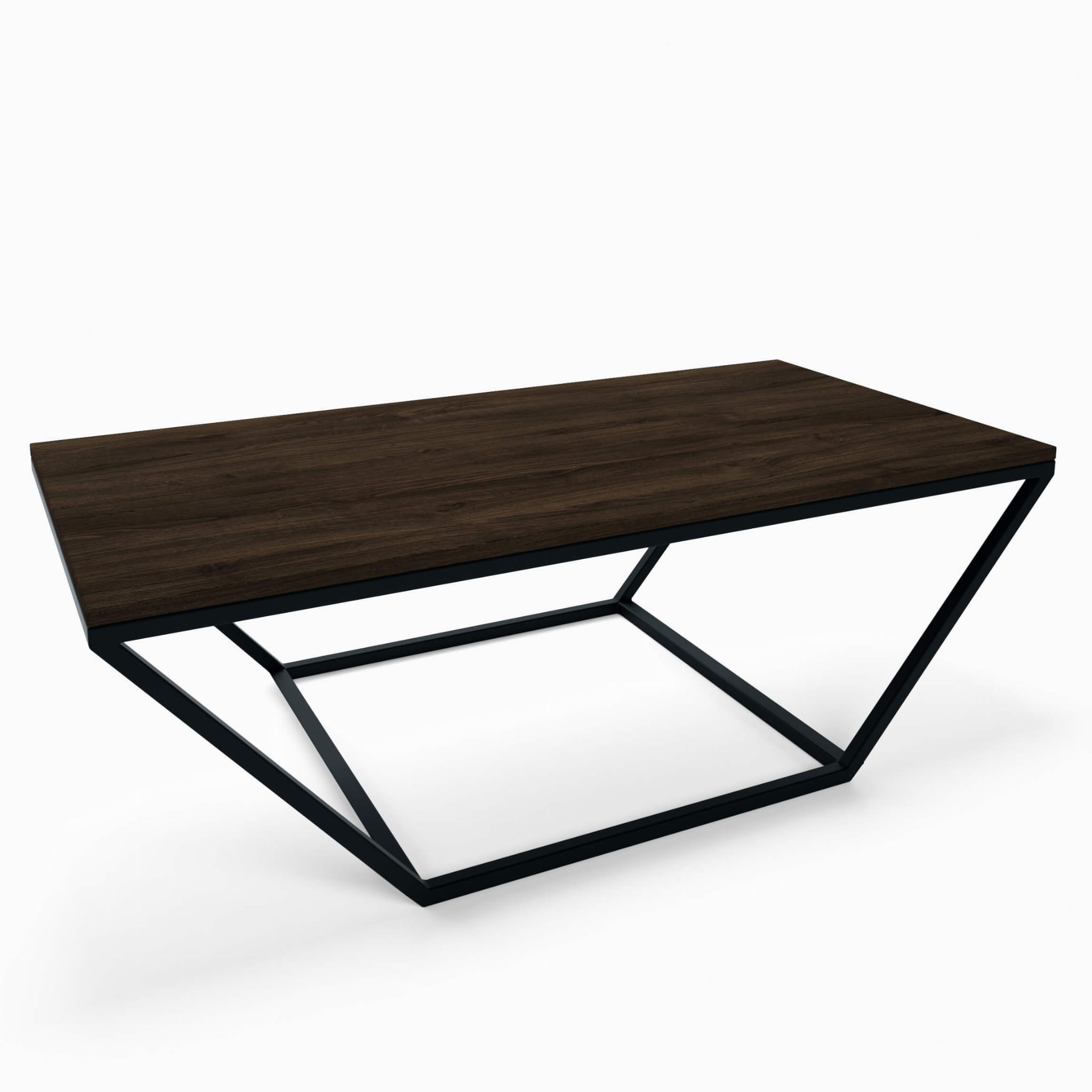 LINDEN er et sofabord med karakteristisk silhuett som skaper et spenningsfelt mellom det stabile og det luftige. Med sitt vinklede metallstell får den rektangulære toppen til å sveve visuelt over den skrånende rammen, og gir bordet en unik og moderne tilstedeværelse i rommet.