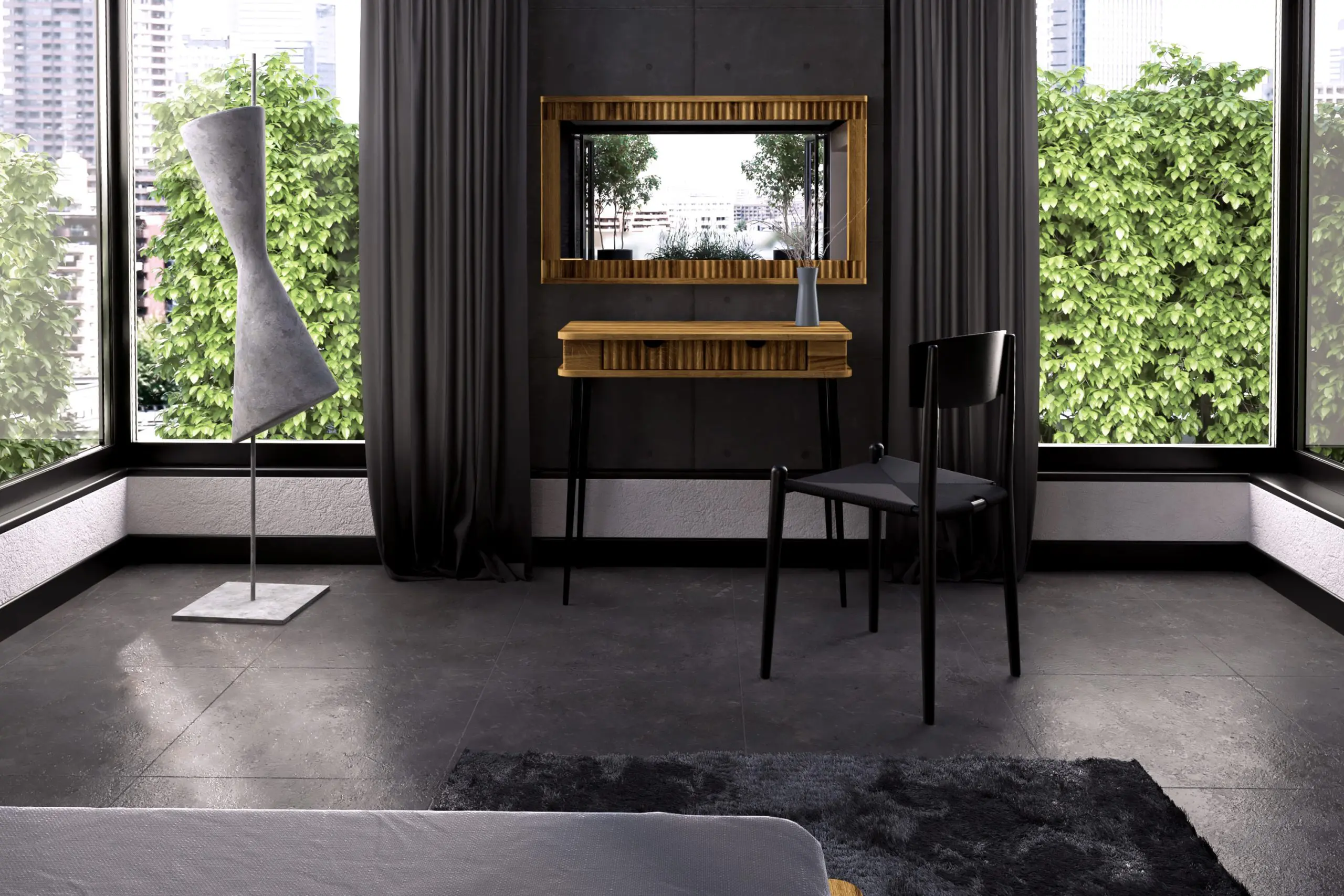 KULA-toalettbordet er et lett og elegant møbel med tydelig karakter. De to skuffene med riflede fronter gir en rytmisk detalj, mens størrelsen og de slanke ben gjør bordet ideelt både i soverommet og i entréen.