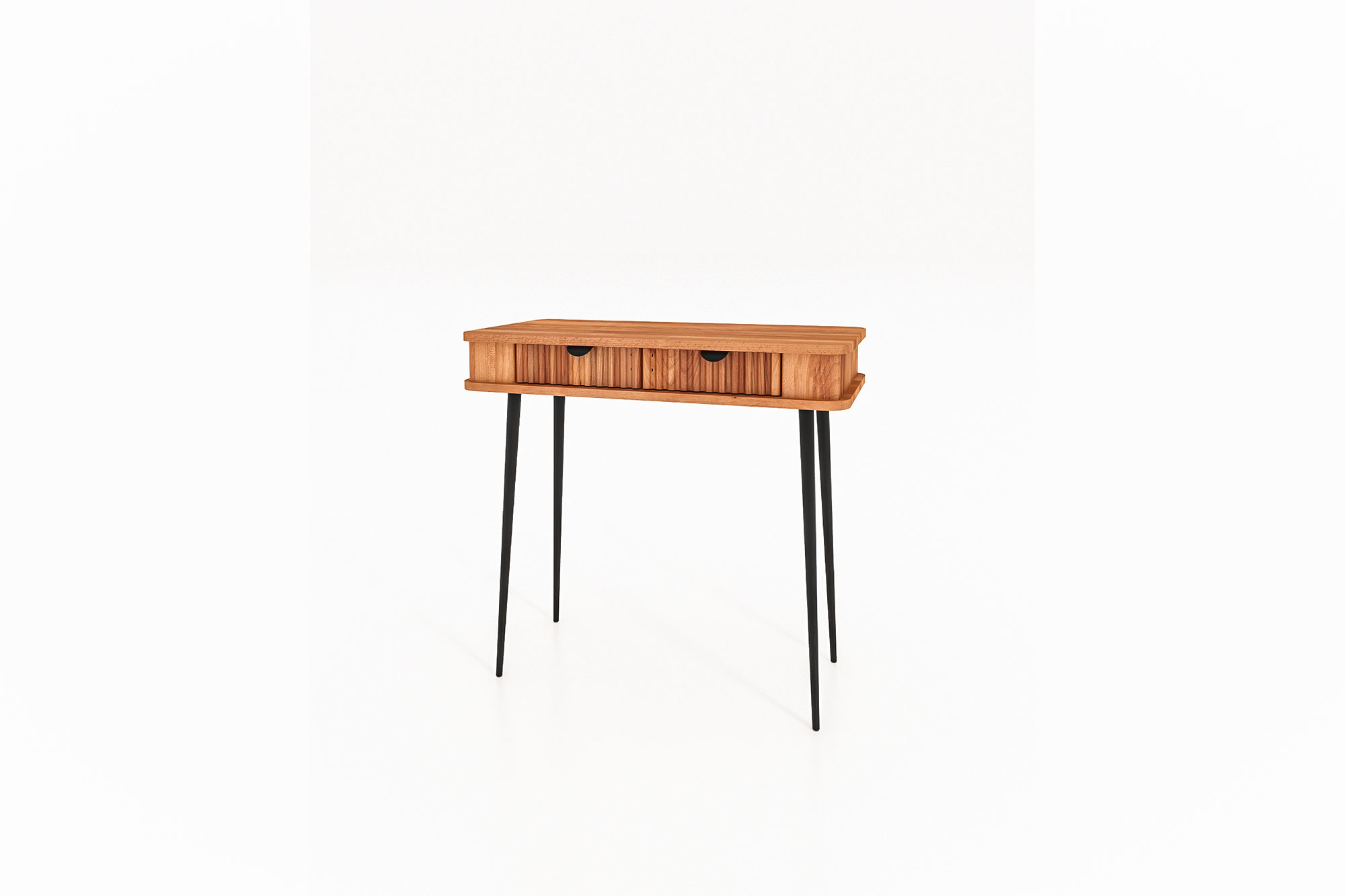 Toalettbord KULA – Riflede skuffer og slanke ben