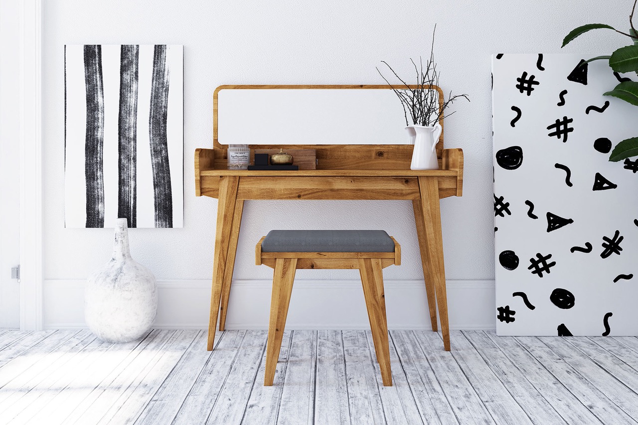 Ideelt som makeupbord i soverommet eller som et personlig hjørne i garderoben – med massivt tre og klassiske detaljer som understreker den skandinaviske retrostilen.