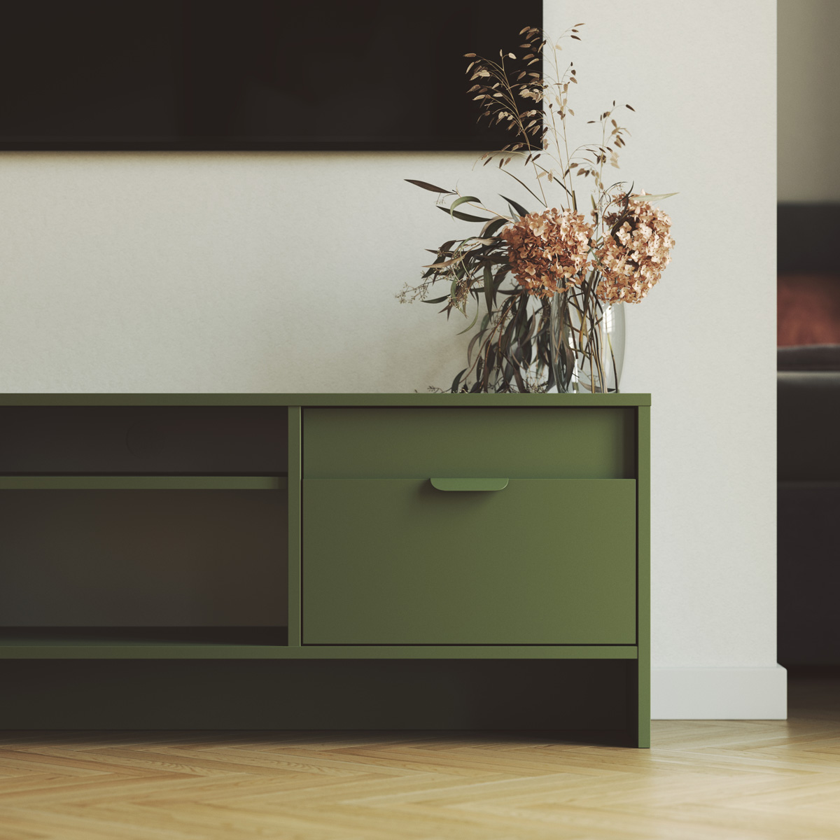 I vores udvalg af møbler finder du blandt andet tv-borde, kommoder med skuffer, skænke, vitrineskabe, vægmonterede skabe, høje skabe, hylder og sofaborde. Hvert møbel kan skræddersys med hensyn til farve, finish og dimensioner, så det passer perfekt til din indretning. Takket være de omfattende tilpasningsmuligheder kombinerer vores møbler ikke blot æstetik med funktionalitet, men opfylder også alle dine behov for opbevaring og rumorganisering, hvilket skaber en unik og sammenhængende indretning i stuen.