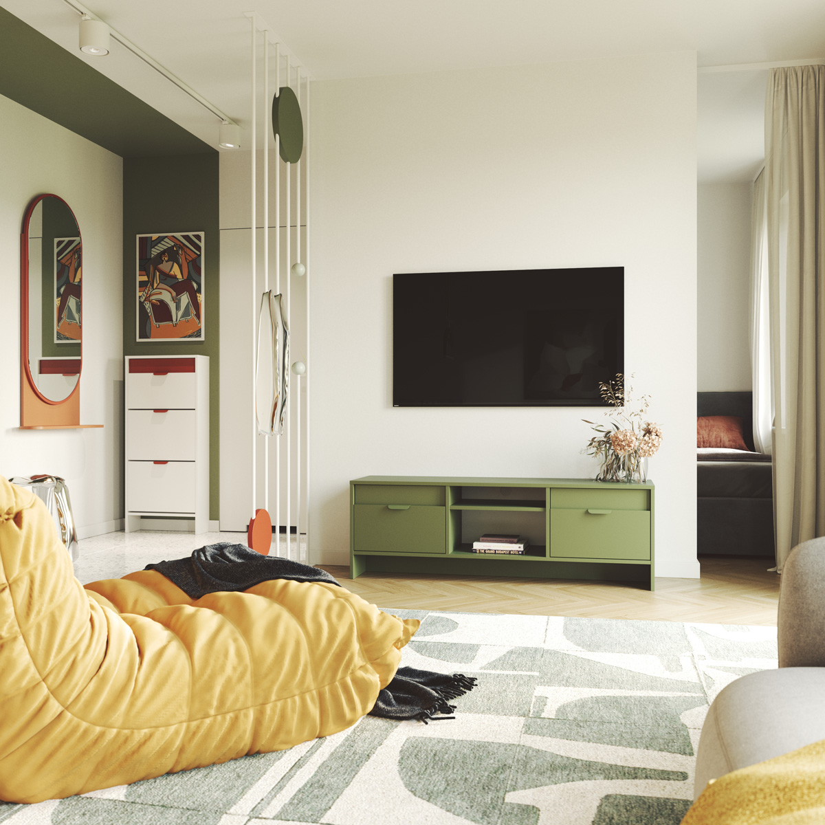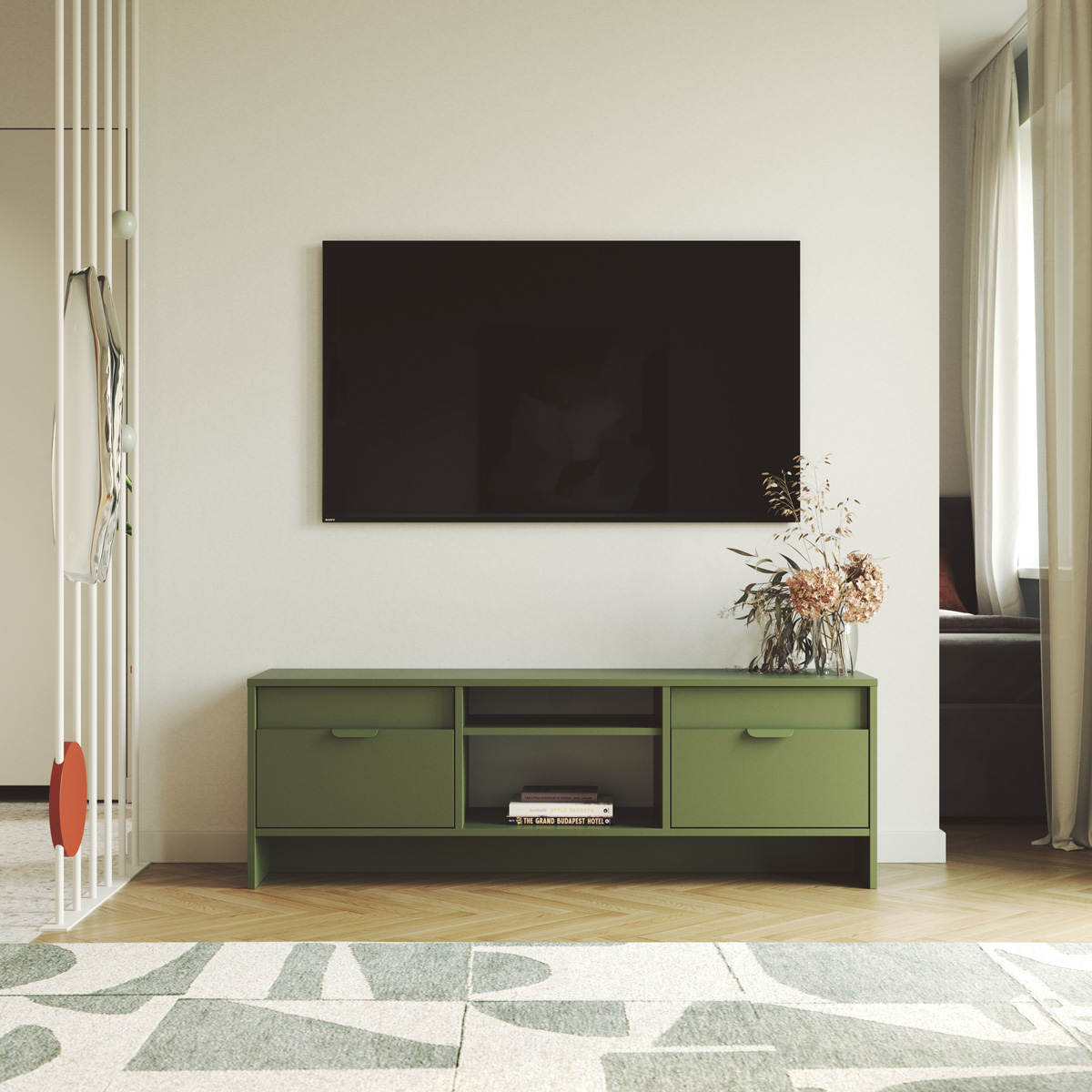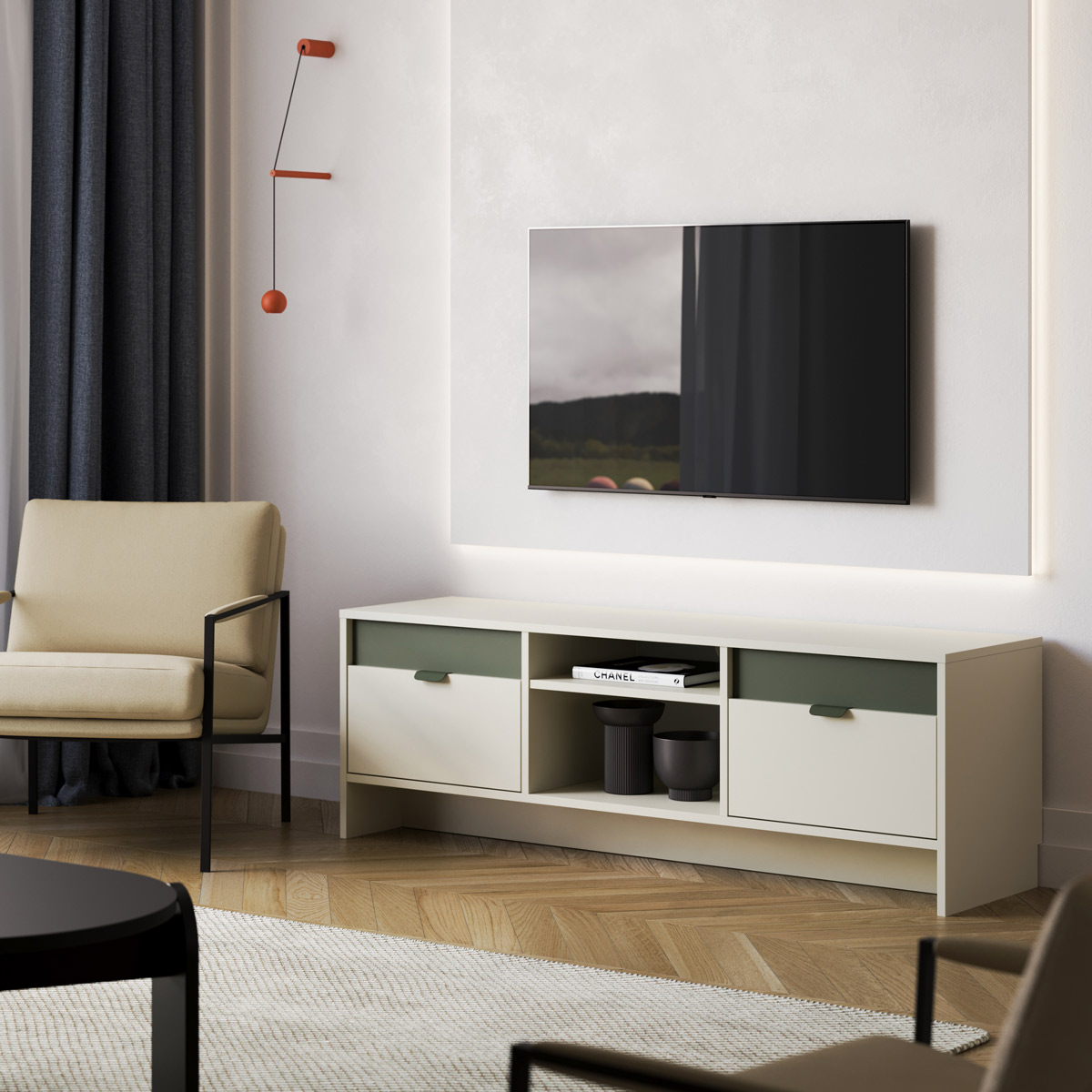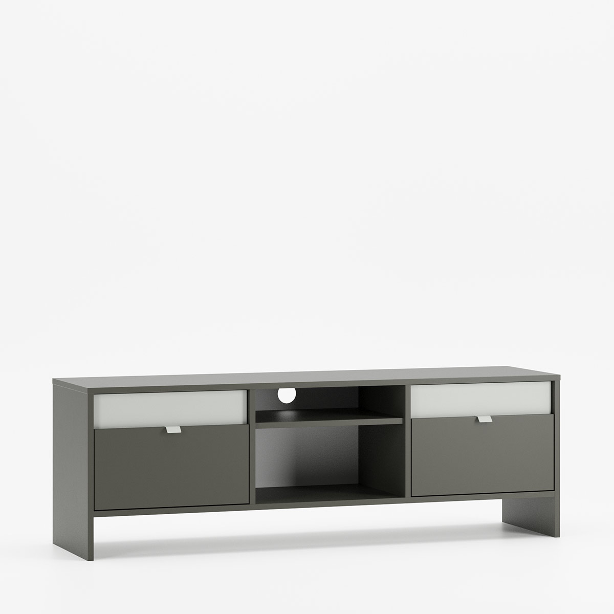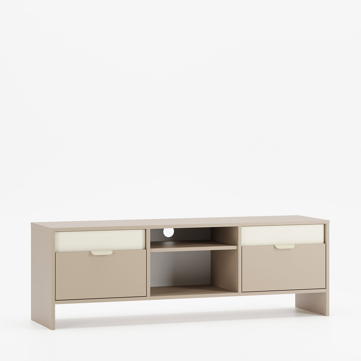 Tv-bænk LAYERS LAY03, designet af KABO&PYDO design studio, er det nyeste tilbud i LAYERS-kollektionen. Det kendetegnes ved en kunstnerisk kombination af to forskellige farver på møbelfronterne, som kan vælges frit som en del af tilpasningsmulighederne. Dette design forener farvevalget med enkle linjer, der er karakteristiske for moderne, prisvindende møbeldesign.