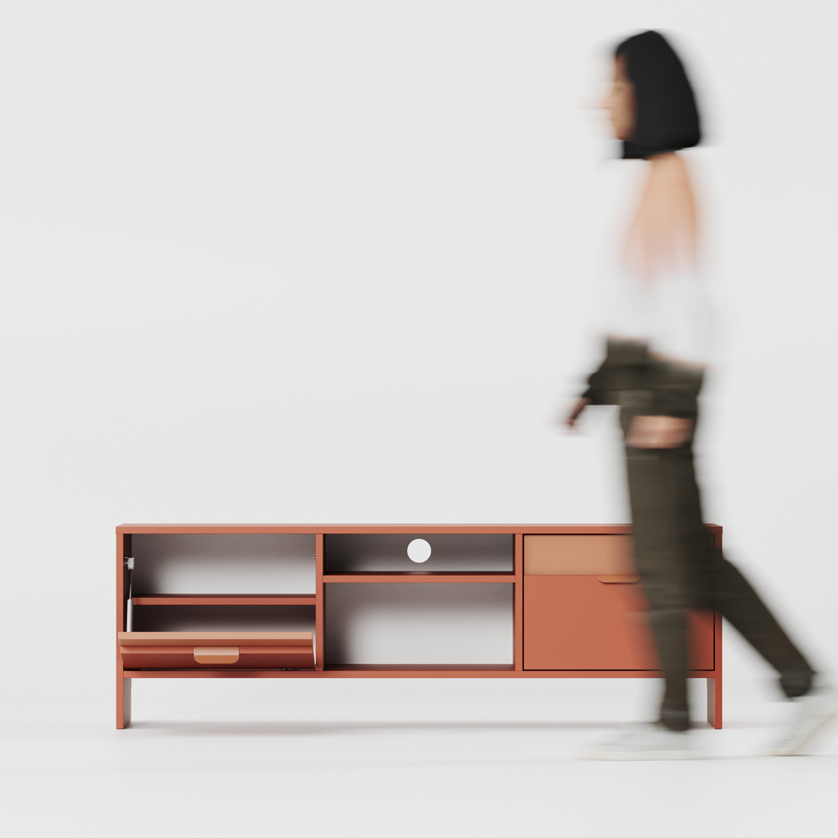 Tv-bænk LAYERS LAY03 er resultatet af et professionelt samarbejde mellem fagfolk, der ud over praktiske egenskaber særligt værdsætter en kreativ tilgang til møbeldesign.