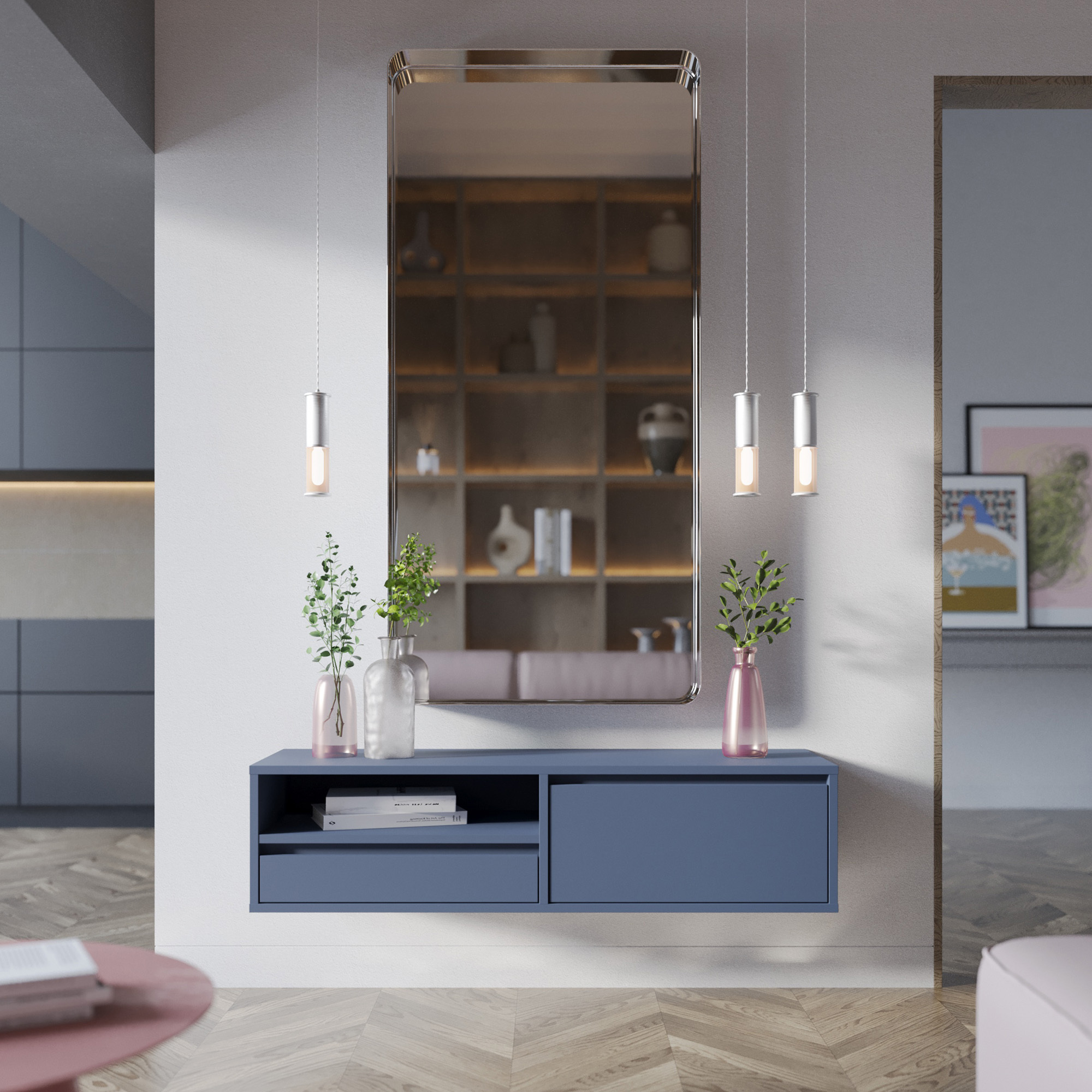 Skuffen glir støyfritt på BLUM-skinner, og gassdempere sørger for myke bevegelser. Det svevende designet kan tilpasses i bredde, dybde og farge for å passe perfekt inn i rommet ditt.