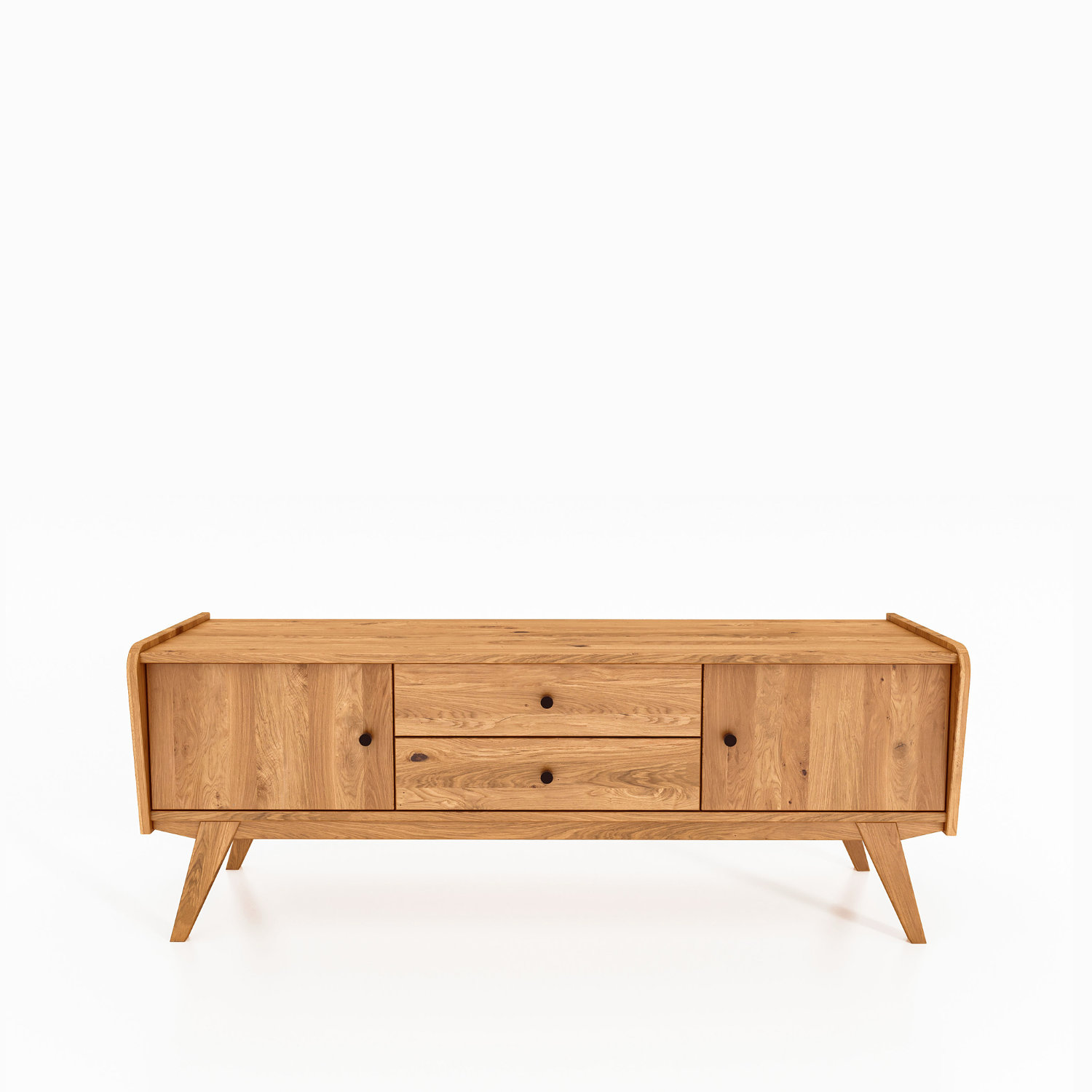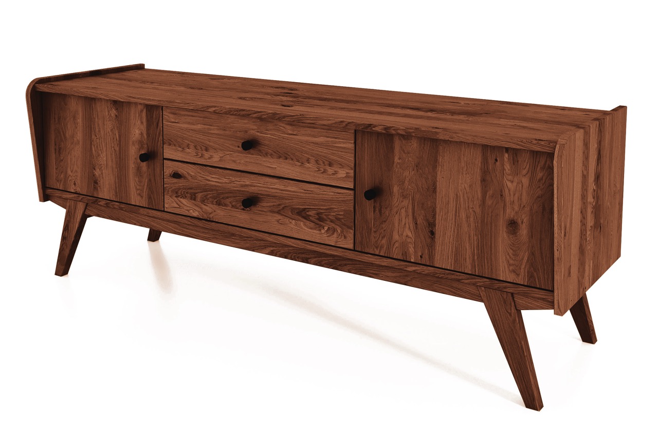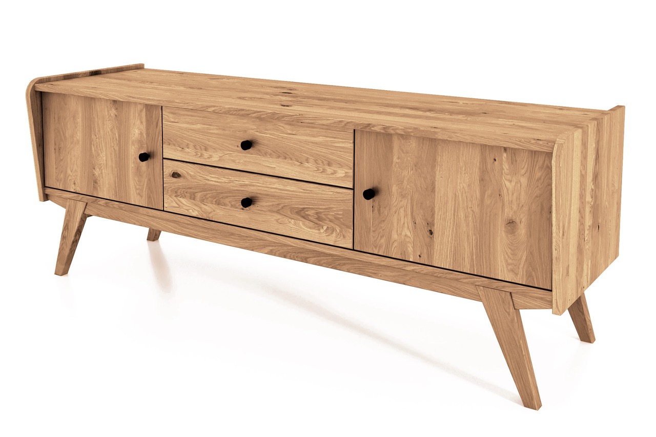 En TV-benk som forener praktisk oppbevaring med retroeleganse – designet for Windes’ filosofi om harmonisk funksjonalitet og naturlig skjønnhet.