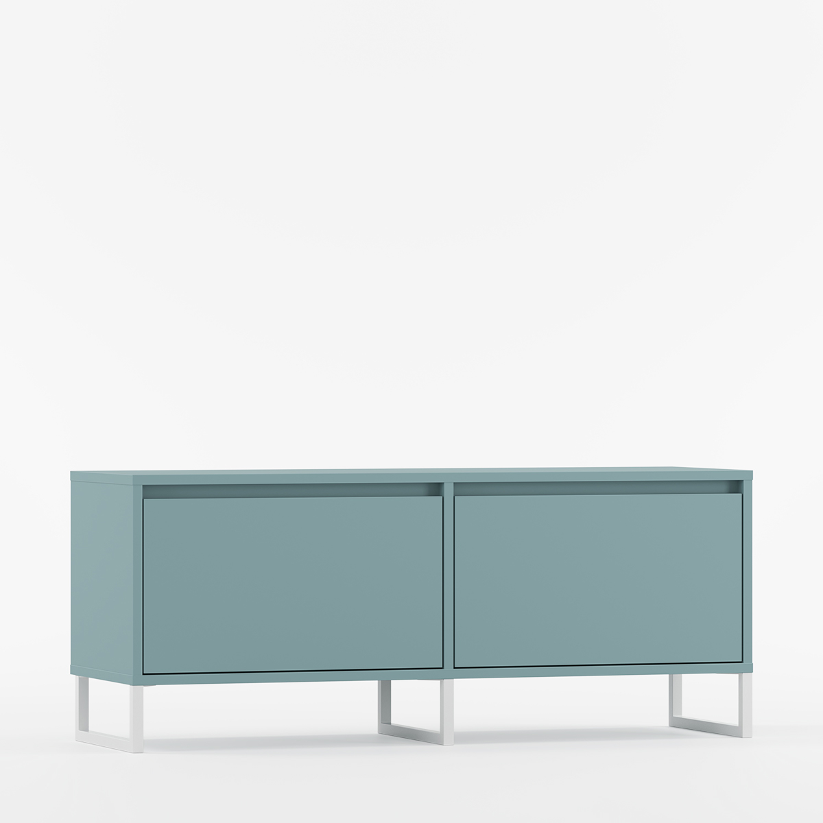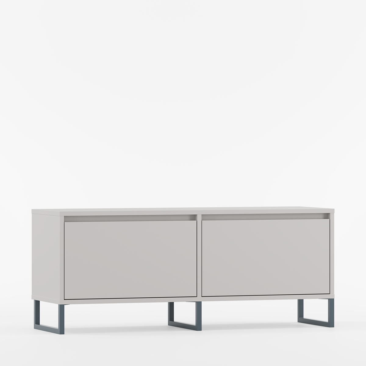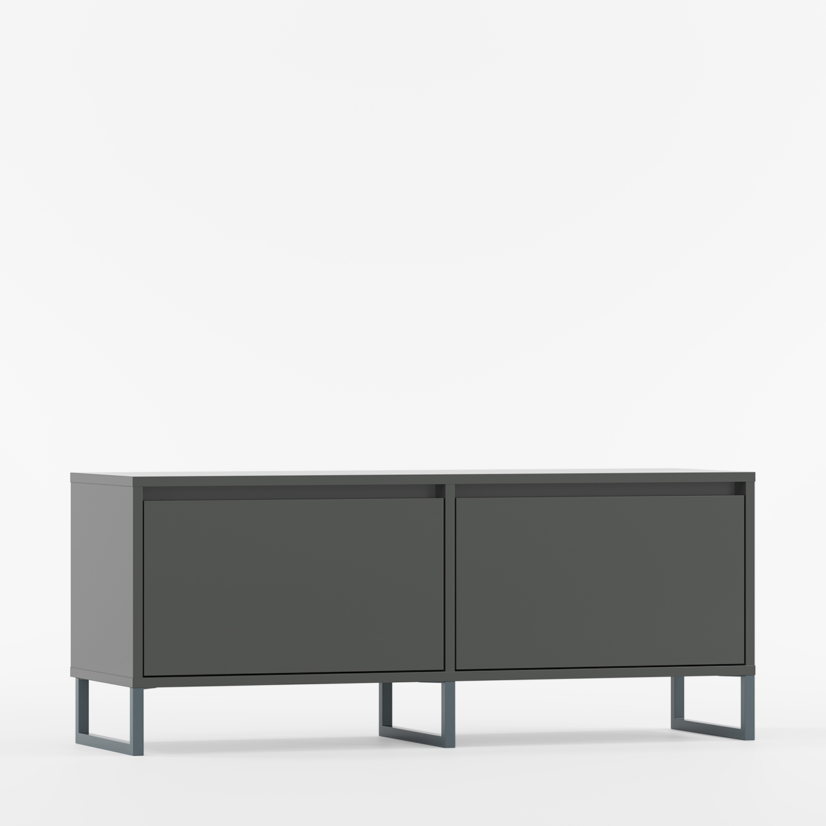 BJORN BTV2K kombinerer skandinavisk design med industriell stil i et elegant, lavt møbel skapt for stuer, soverom og tv-områder. To symmetriske rom med dører som åpner nedover gir optimal fleksibilitet for organisering av utstyr og skaper et ryddig uttrykk.