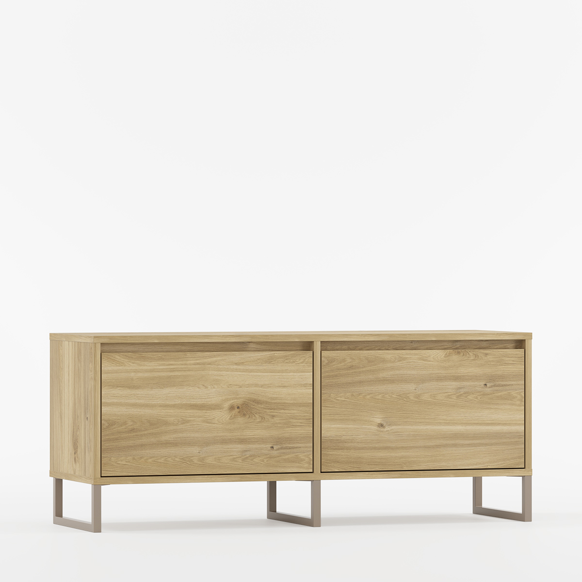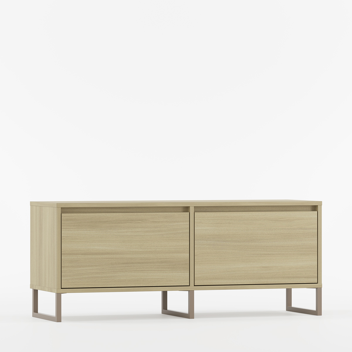 TV-benk med to dører og slanke metallben.