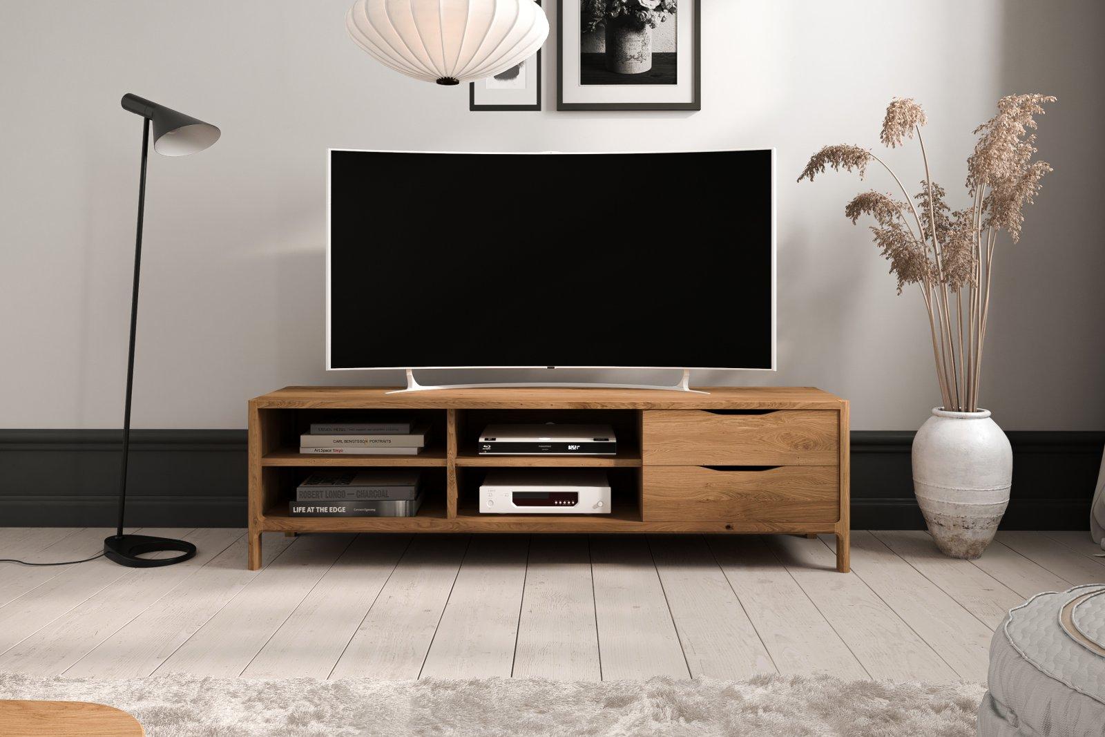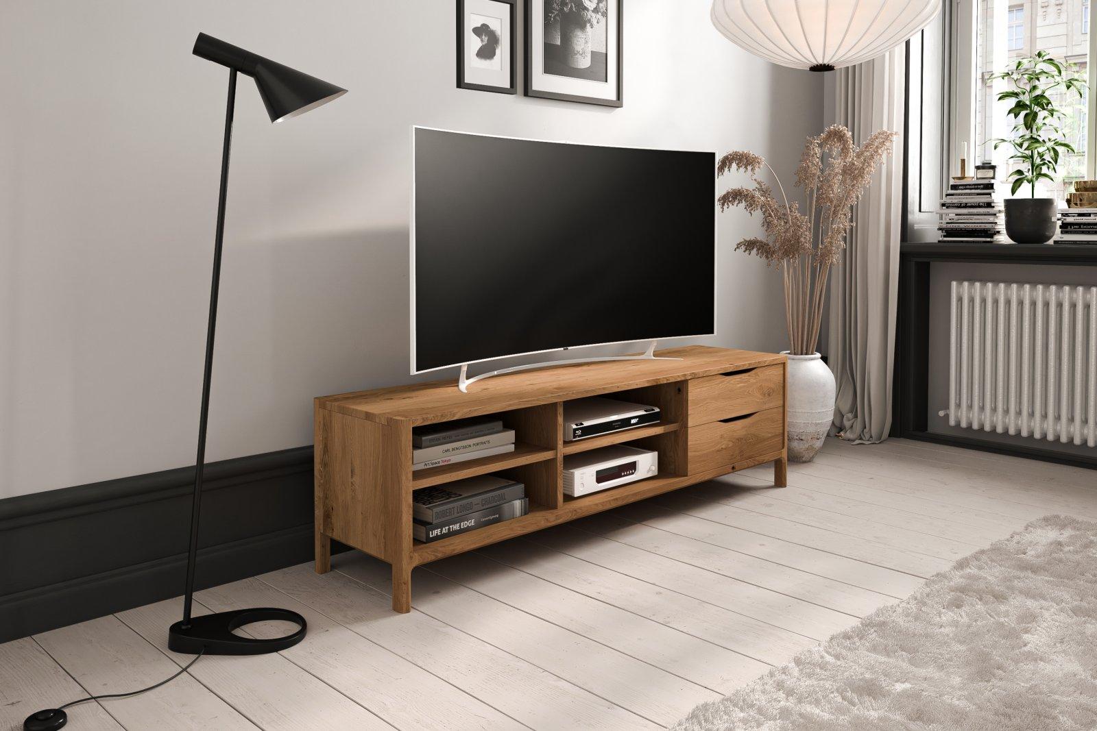TV-benken fra TWIG-kolleksjonen med både åpne hyller og skuffer er skapt til hjem hvor funksjon, orden og estetikk går hånd i hånd.