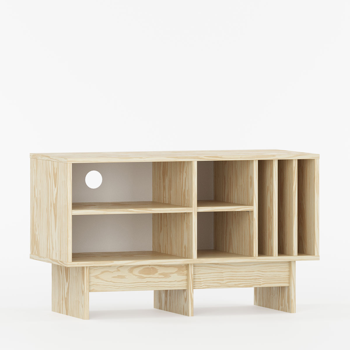 Denne modellen kombinerer japansk-inspirert design med funksjonell oppbevaring, perfekt for vinylplater, magasiner og dekorative gjenstander. Den åpne og lette konstruksjonen gir et harmonisk preg som passer godt i mindre rom som stue, soverom, kontor eller ungdomsrom.