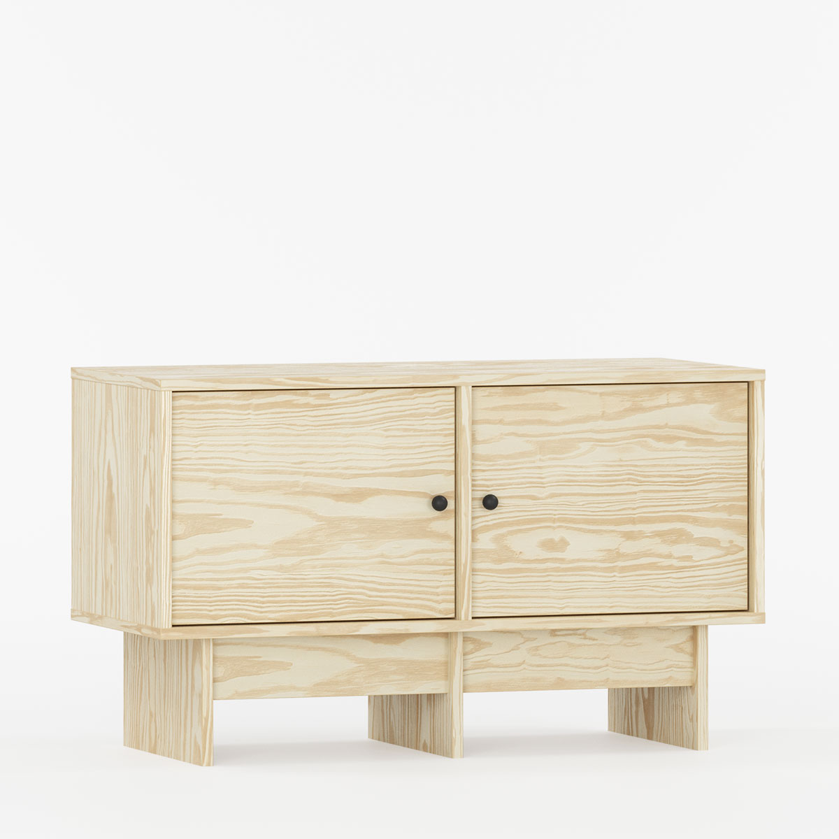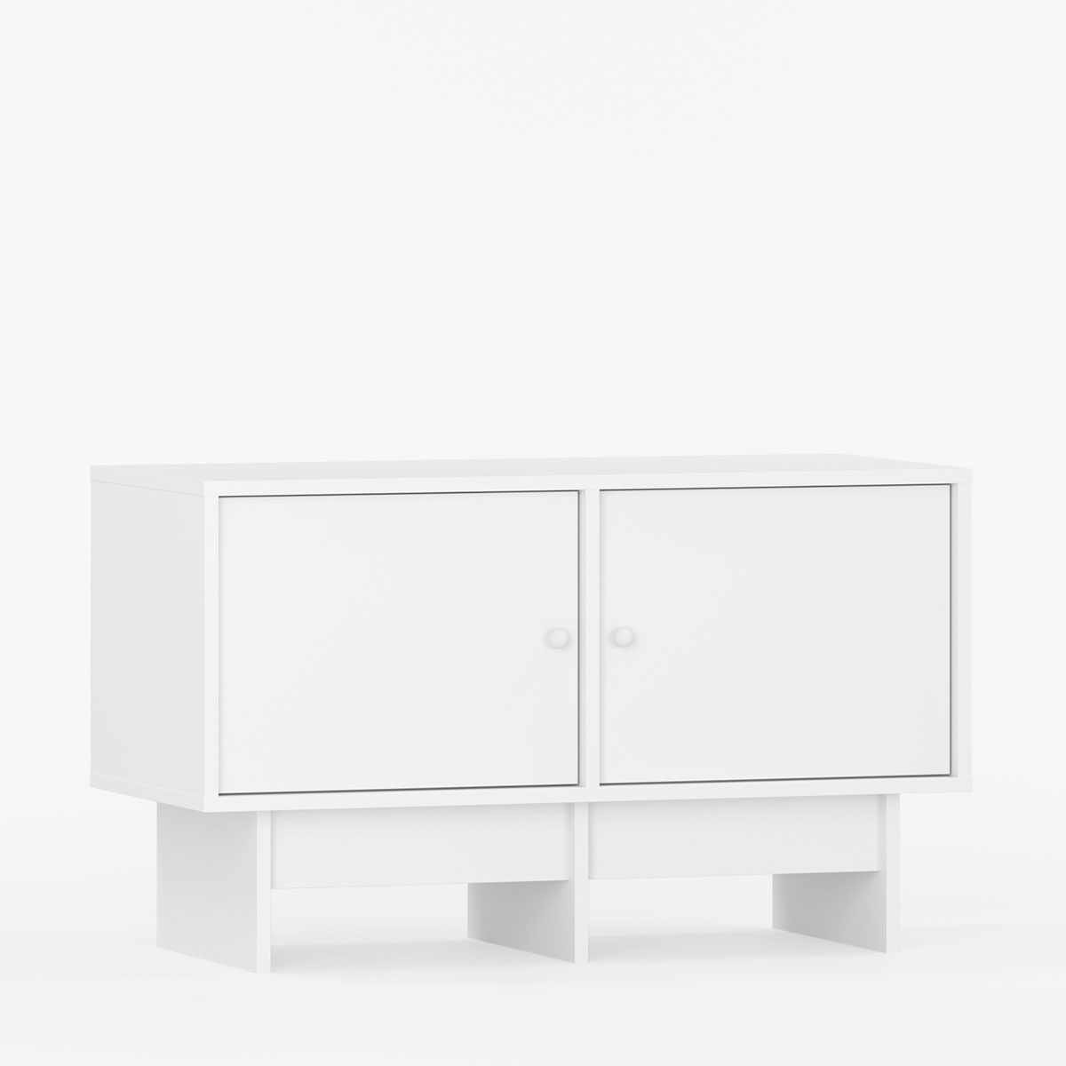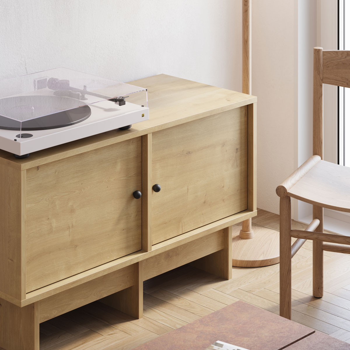 KABE KTV1 er et minimalistisk TV-bord inspirert av japansk estetikk og harmoni. Det store todelte rommet bak to klassiske dører gir rikelig oppbevaring, mens den romslige bordplaten holder TV og utstyr elegant organisert.