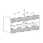 SIGI WSU02 kombinerer baderomsskap, keramisk servant og valgfri kran i ett harmonisk design som passer til både mindre og større baderom. De to romslige skuffene glir mykt på BLUM-skinner og gir god oppbevaring til kosmetikk og tilbehør.