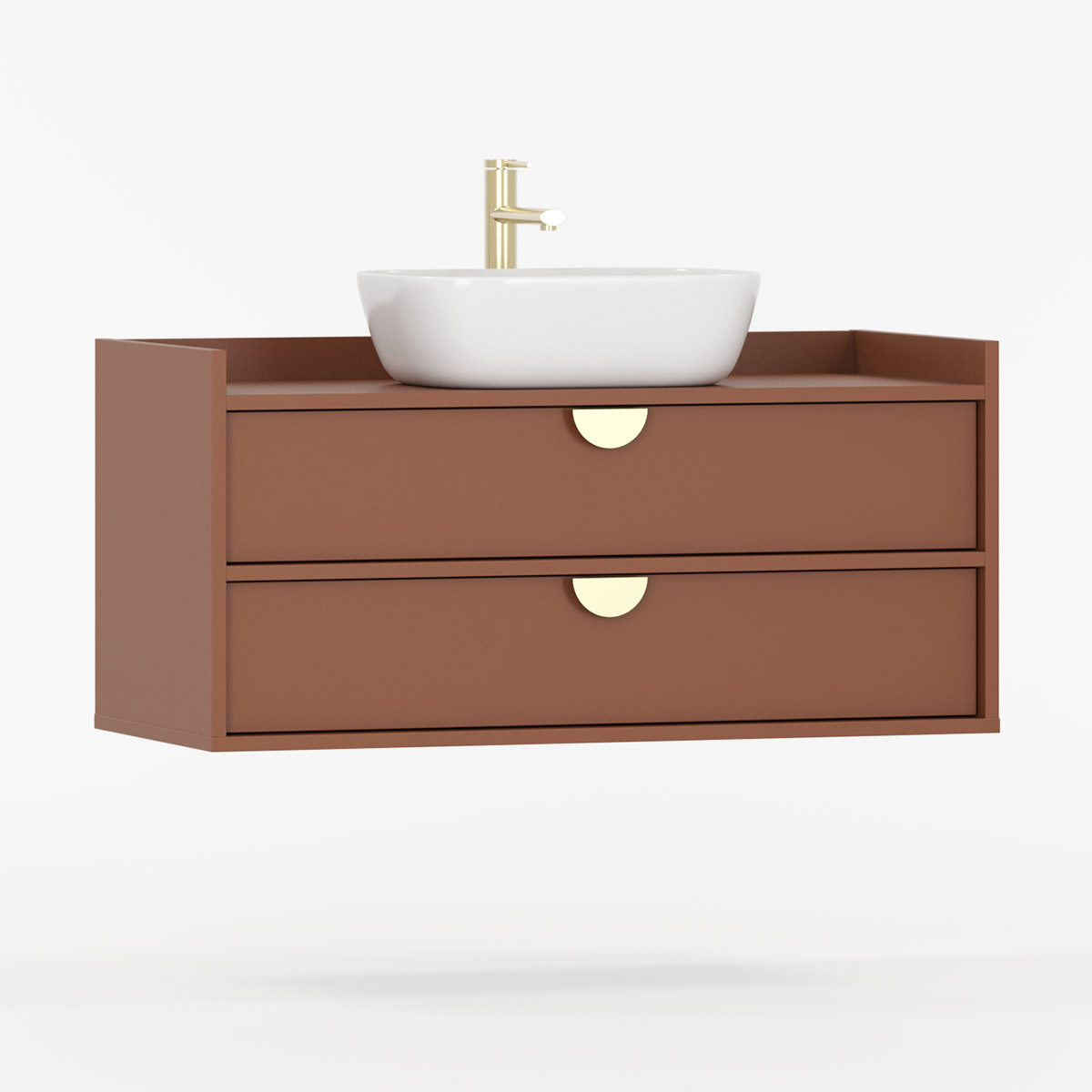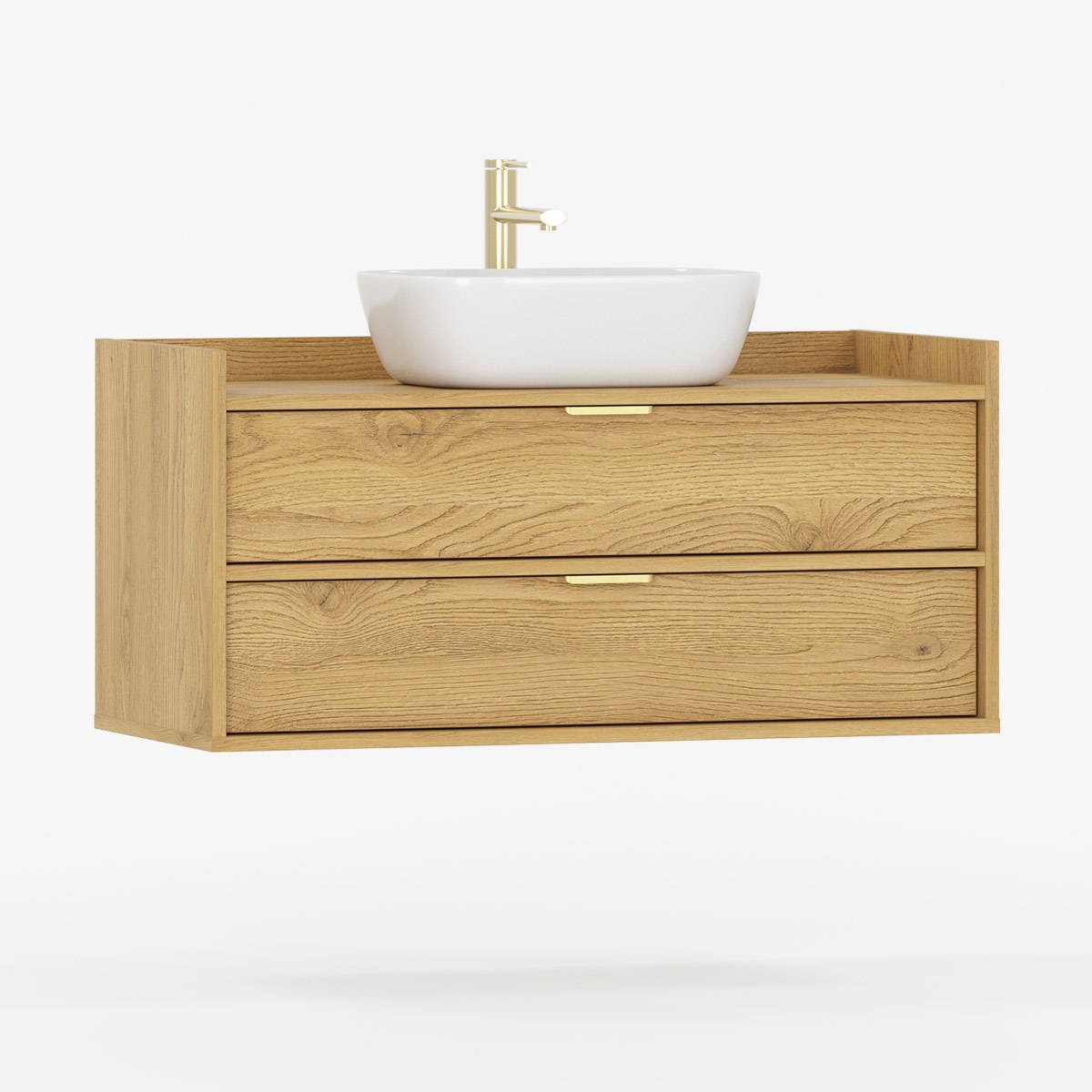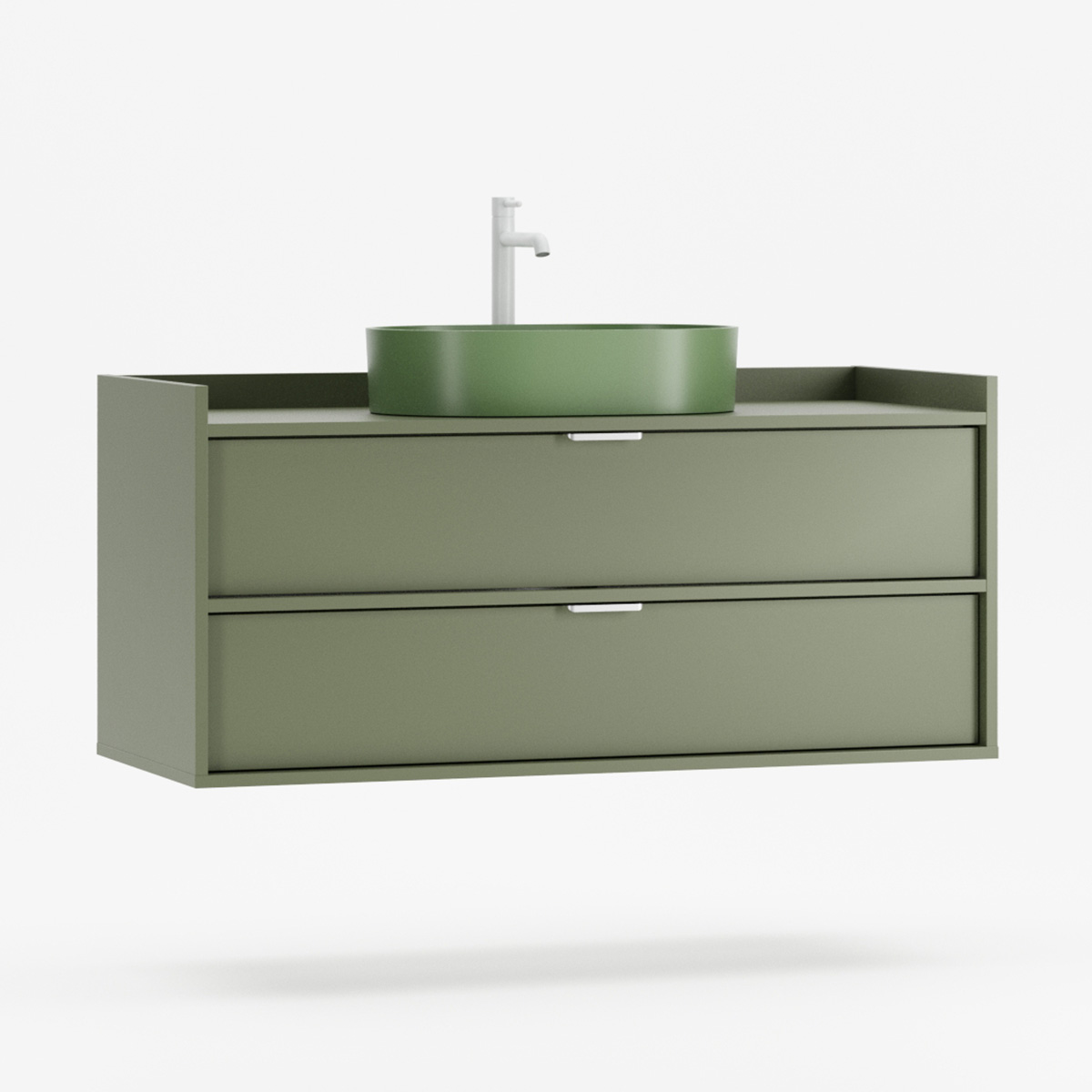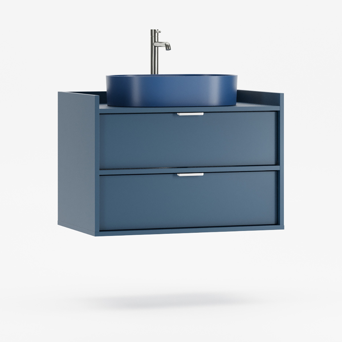 SIGI WSU02 kombinerer baderomsskap, keramisk servant og valgfri kran i ett harmonisk design som passer til både mindre og større baderom. De to romslige skuffene glir mykt på BLUM-skinner og gir god oppbevaring til kosmetikk og tilbehør.