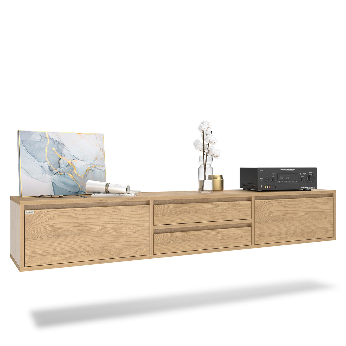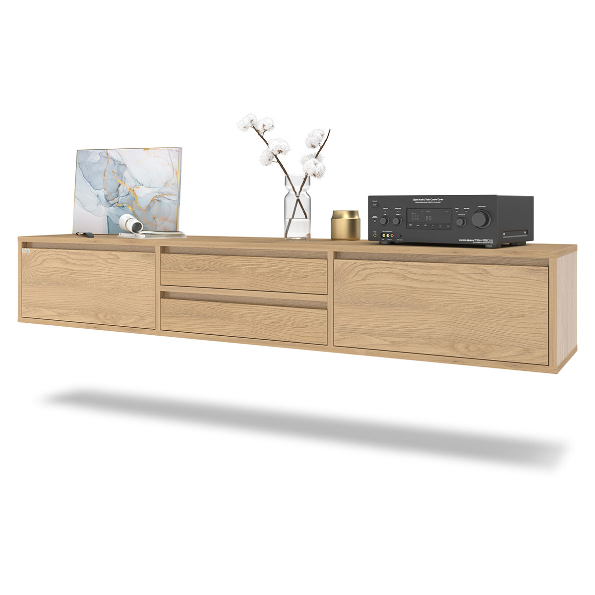 UBBE WTV4S gir ditt moderne rom et lett og luftig uttrykk med sitt vegghengte design. Den enkle formen skaper ro i rommet, mens den praktiske oppbevaringen holder medieenheter og kabler diskret organisert.