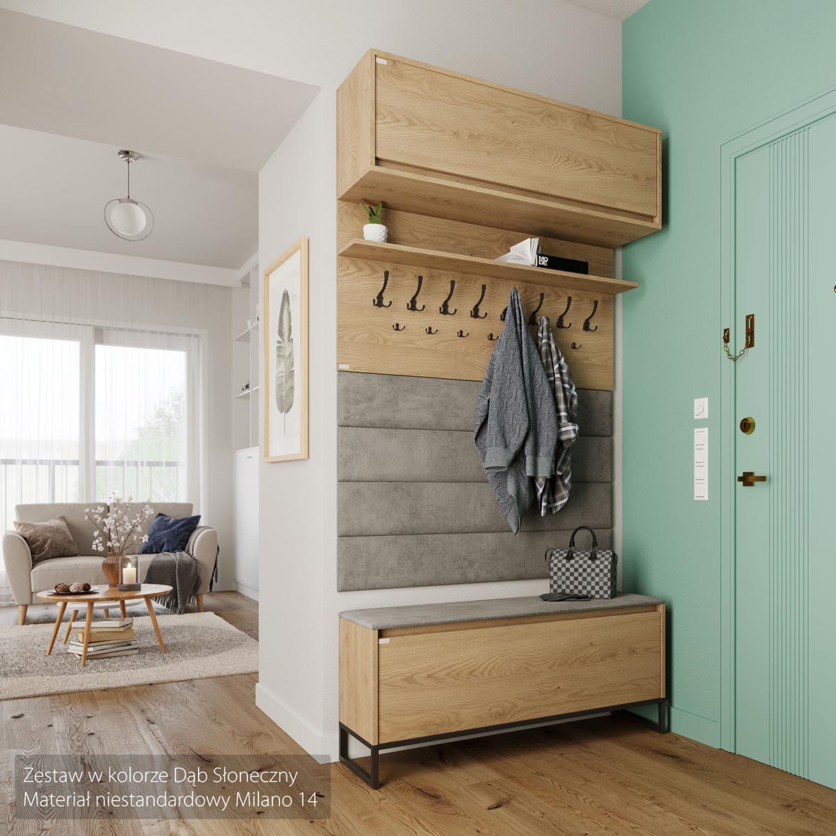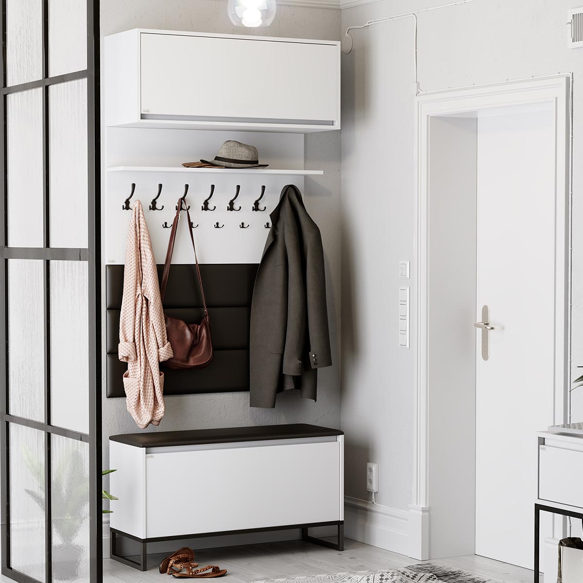 Bak døren skjuler det seg fleksibel lagringsplass med justerbar hylle som kan fjernes ved behov. Skapet kan brukes til alt fra klær og sko til utstyr og tilbehør, og komplementerer enkelt andre møbler i ODIS-serien.