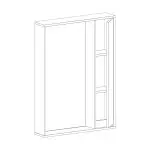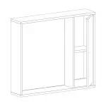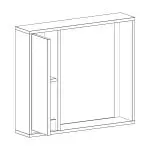 Skapet har et stort speil som gir romfølelse, supplert av en åpen hylle under – ideell for daglig bruk av kosmetikk eller småting. Det leveres i høyre- eller venstrevendt variant og kan bestilles i ønsket bredde, høyde, dybde og farge.