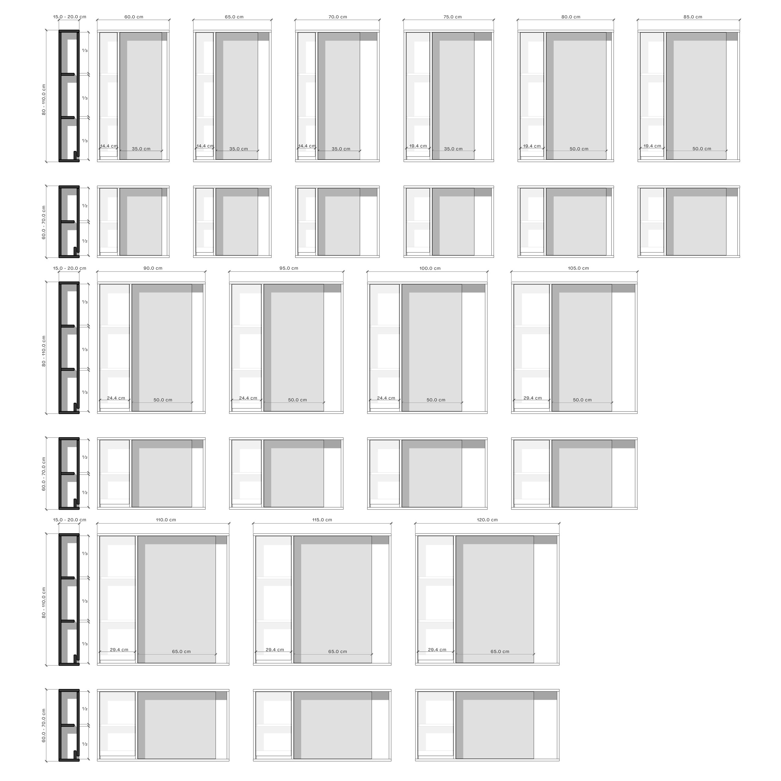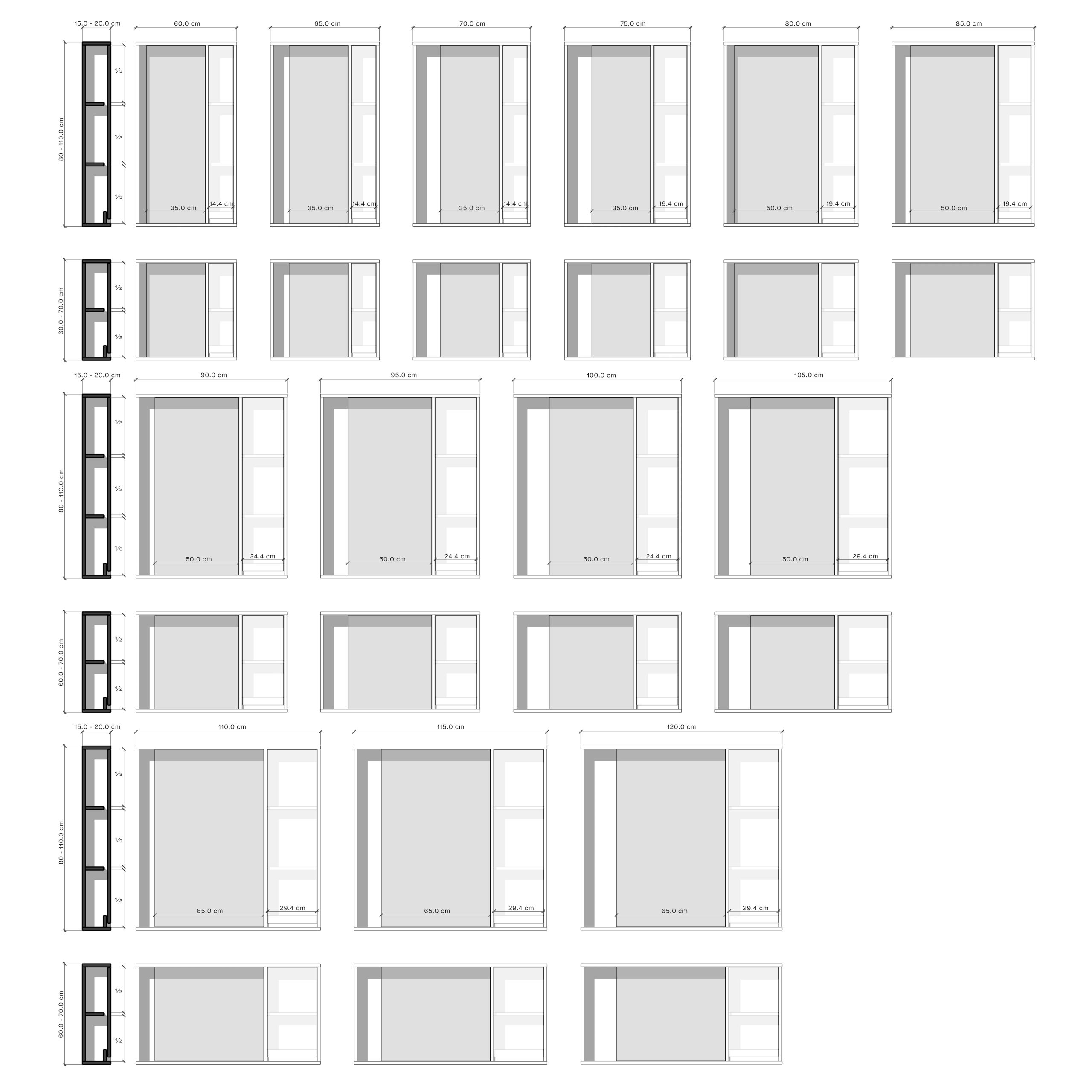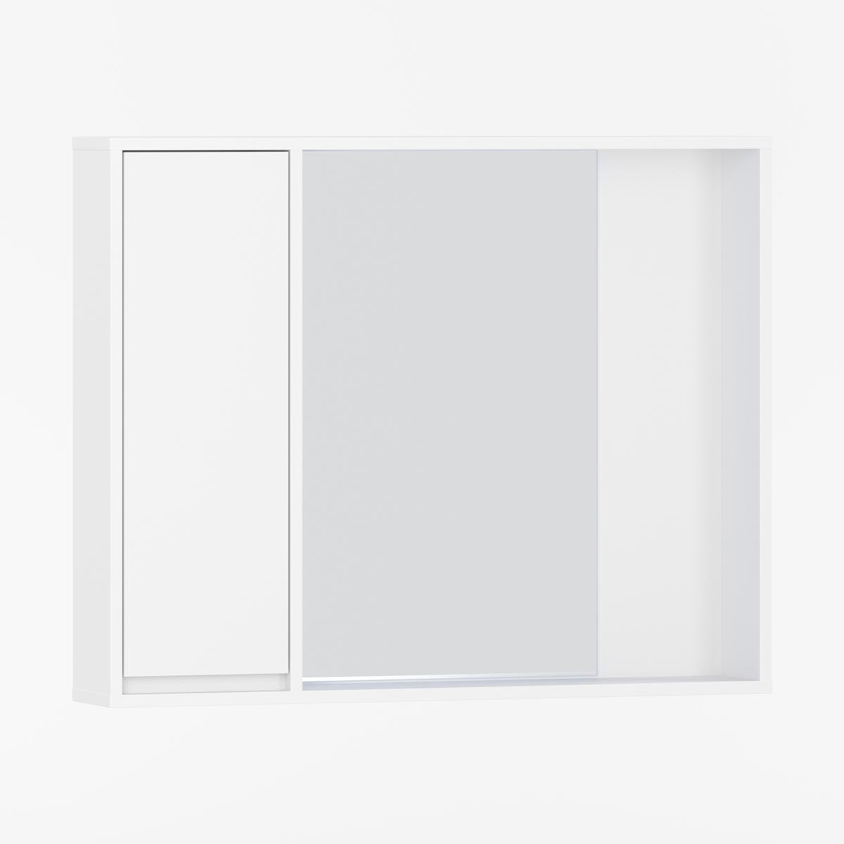 Skapet har et stort speil som gir romfølelse, supplert av en åpen hylle under – ideell for daglig bruk av kosmetikk eller småting. Det leveres i høyre- eller venstrevendt variant og kan bestilles i ønsket bredde, høyde, dybde og farge.