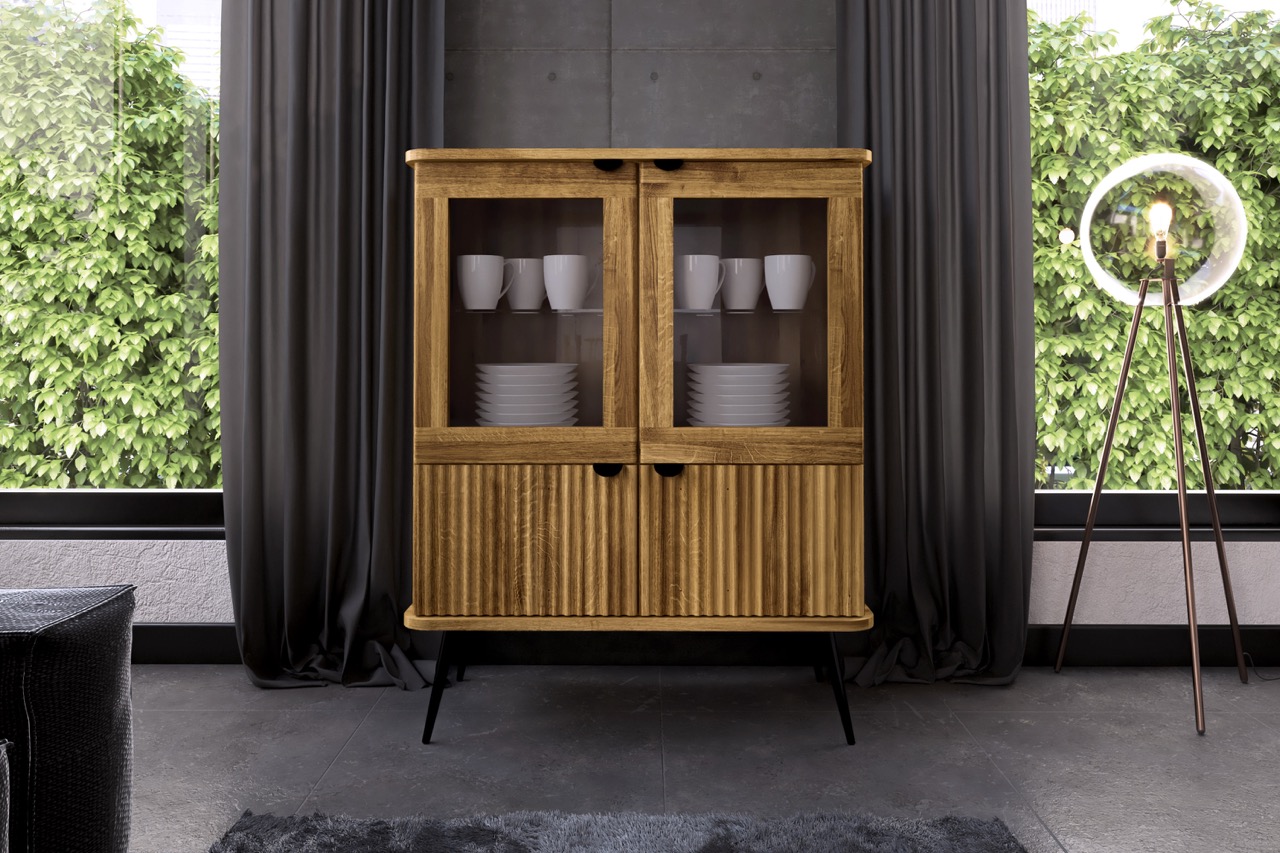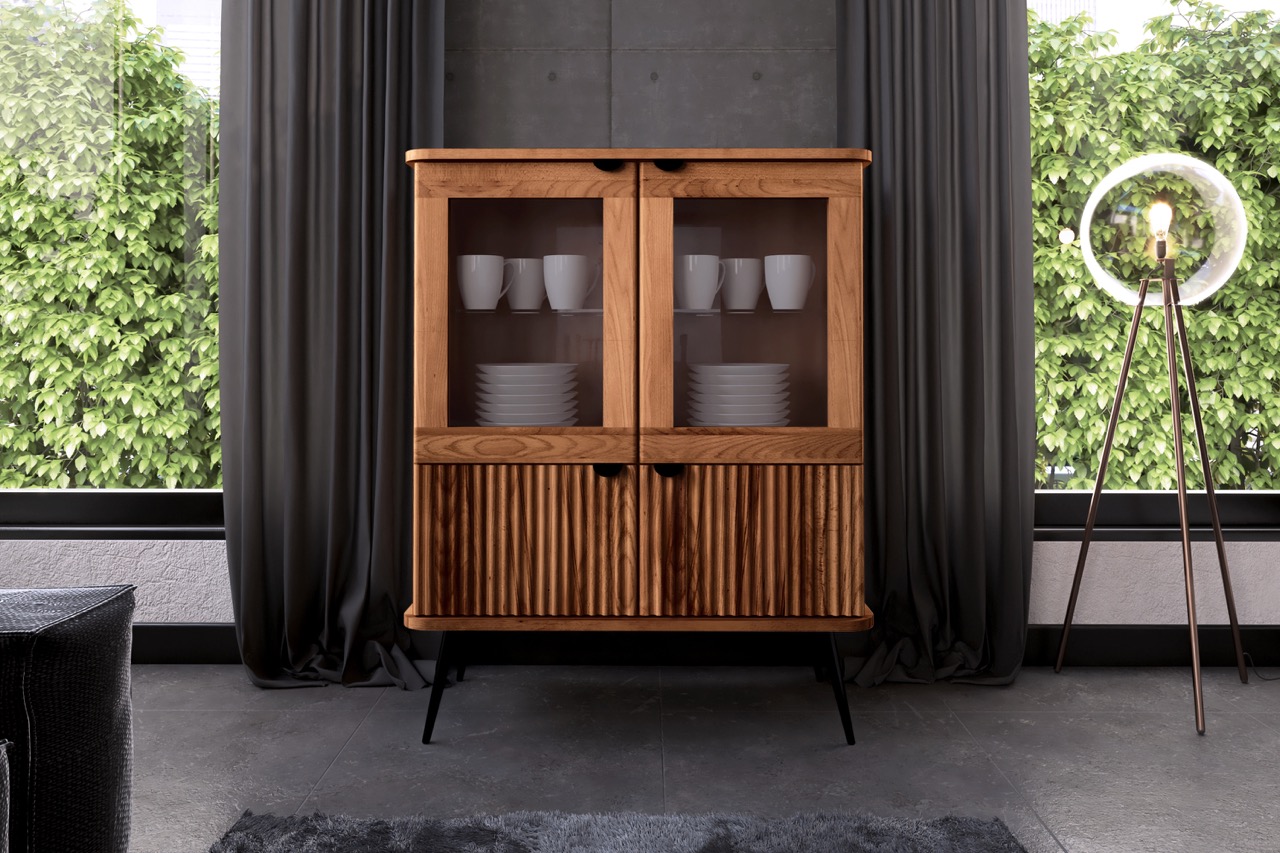 Vitrineskap KULA – Glassdører og riflede fronter