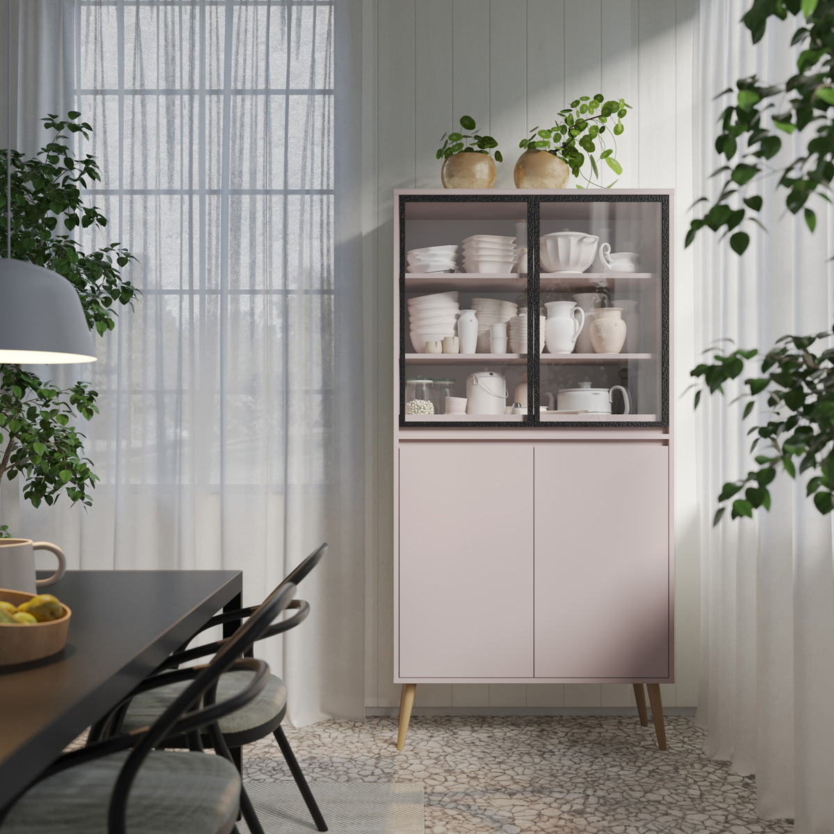 Fenris WF1 gir deg både skjult oppbevaring og mulighet til å vise frem bøker, keramikk eller dekor. Det enkle designet passer like godt i stue, spisestue og på kontor.
