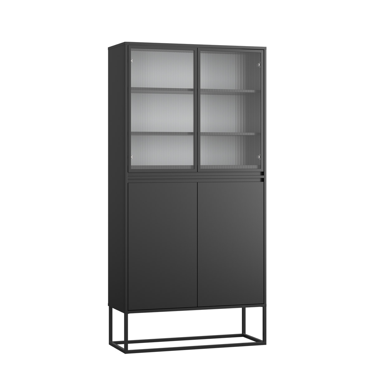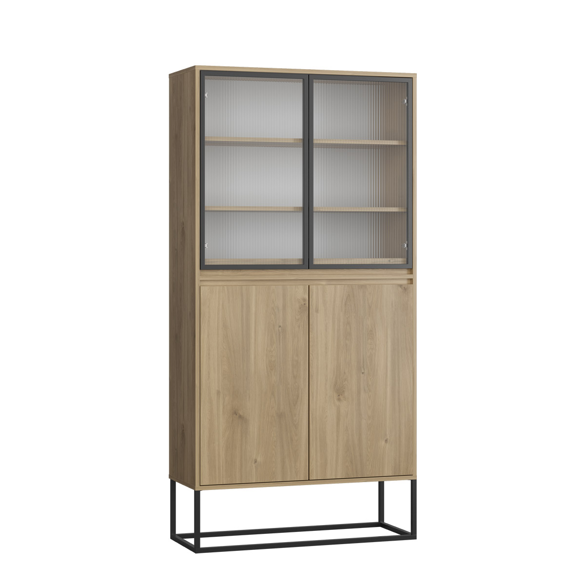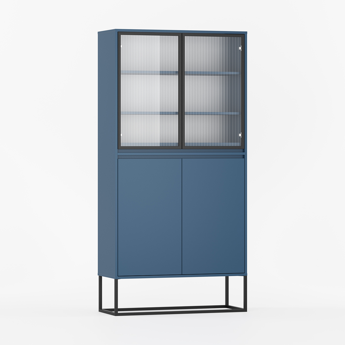 Denne modellen fra ODIS-kolleksjonen kombinerer lukket oppbevaring og glassflater i et tidløst, minimalistisk uttrykk. Den høye konstruksjonen gjør det mulig å både skjule og stille ut bøker, servise eller dekor, samtidig som metallprofilene som erstatter tradisjonelle ben gir skapet et moderne og stabilt preg.