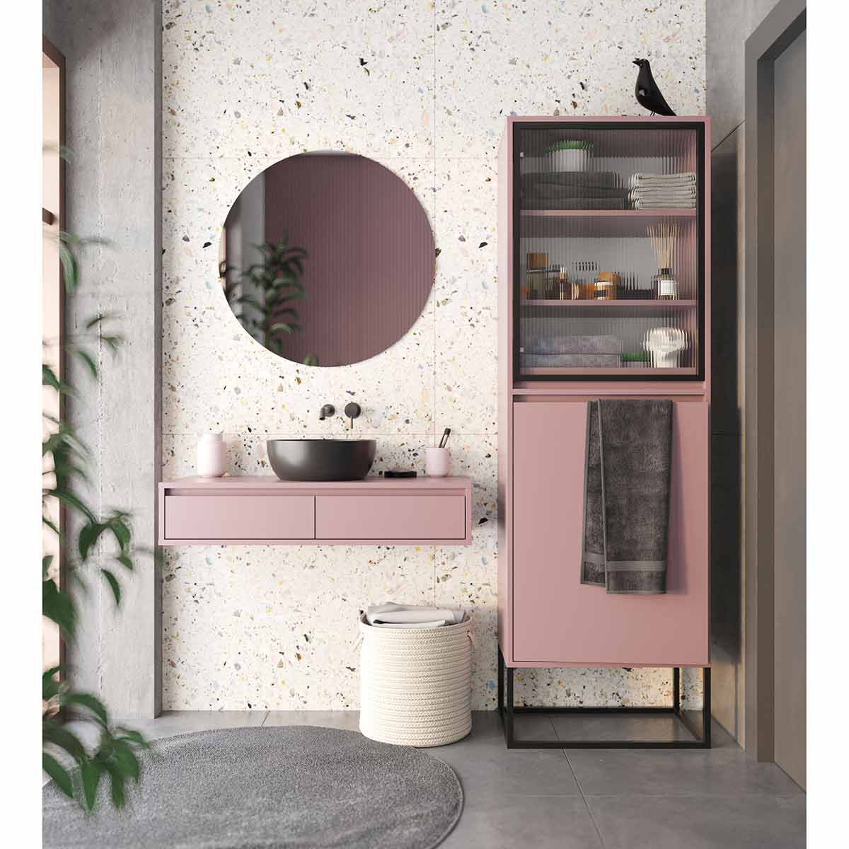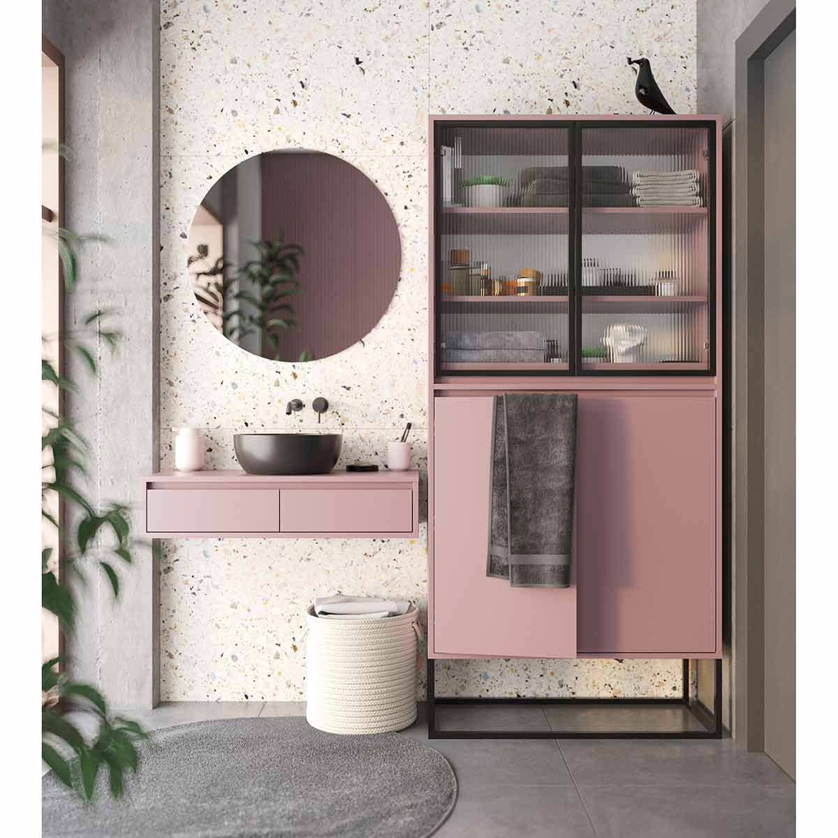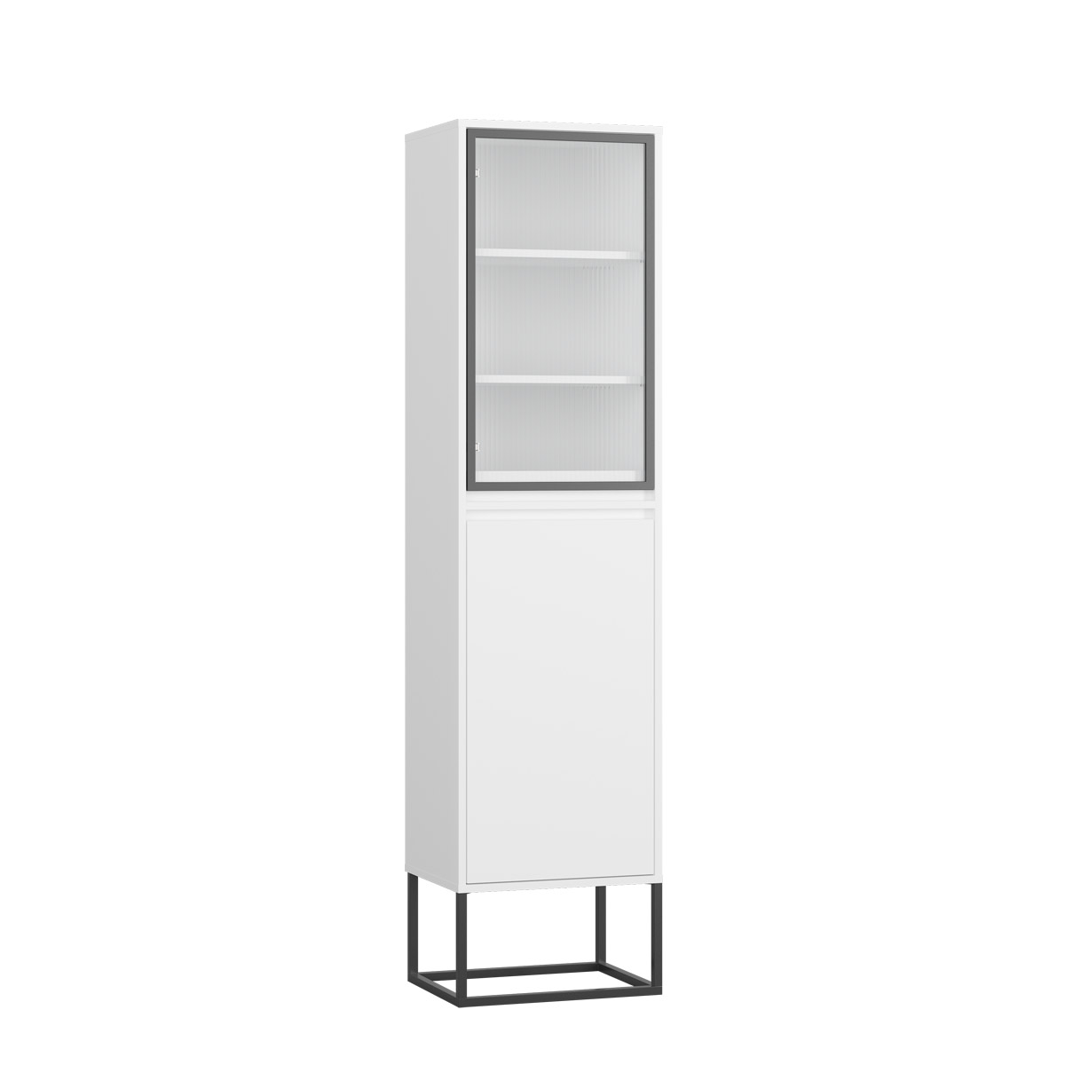 Denne modellen fra ODIS-kolleksjonen kombinerer lukket oppbevaring og glassflater i et tidløst, minimalistisk uttrykk. Den høye konstruksjonen gjør det mulig å både skjule og stille ut bøker, servise eller dekor, samtidig som metallprofilene som erstatter tradisjonelle ben gir skapet et moderne og stabilt preg.
