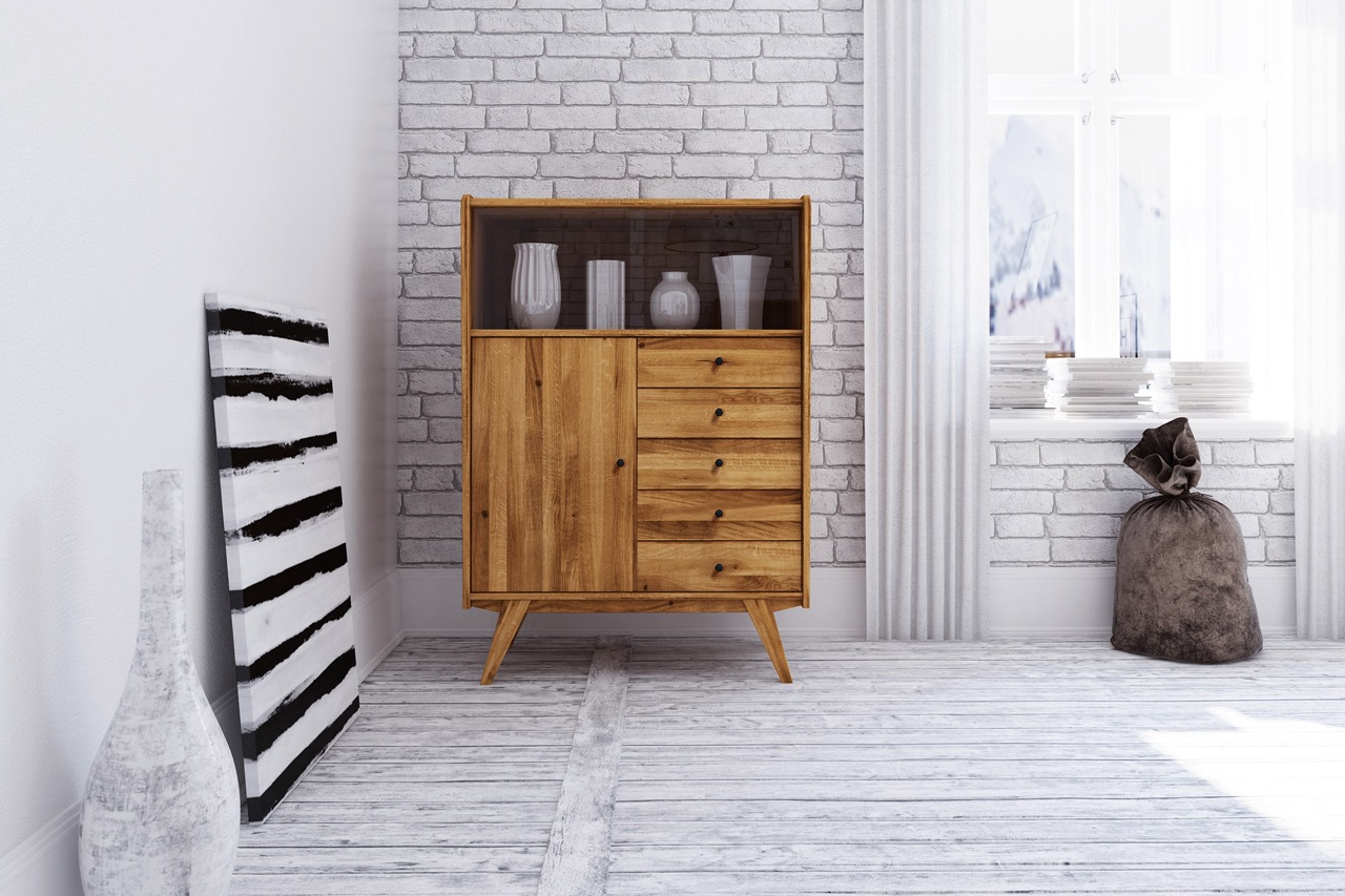 Vitrineskap RETRO – Med én dør og fem skuffer