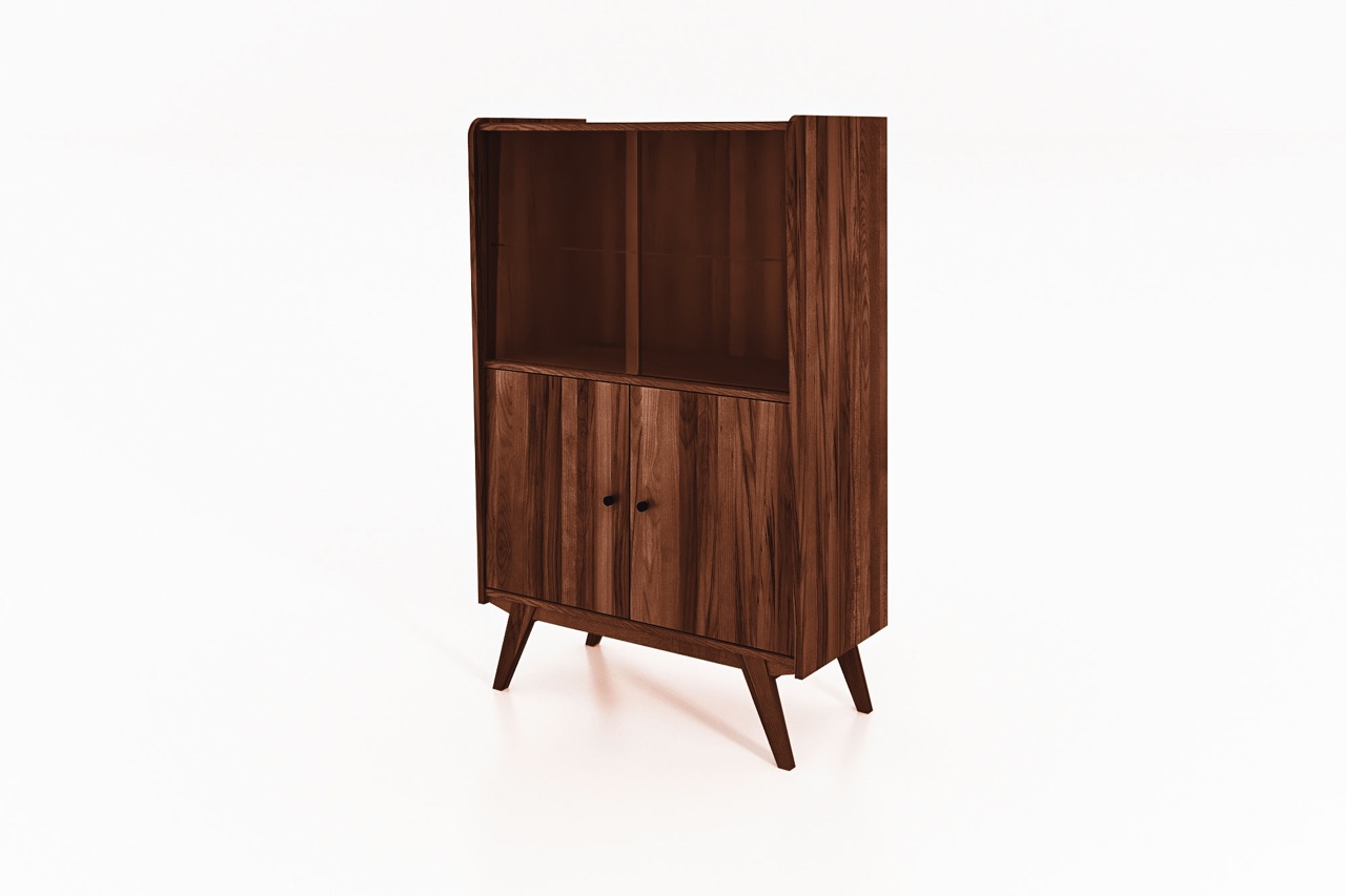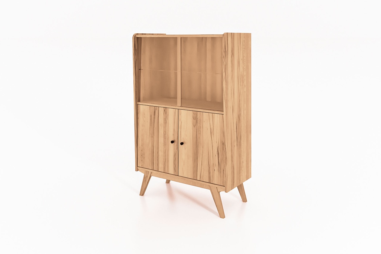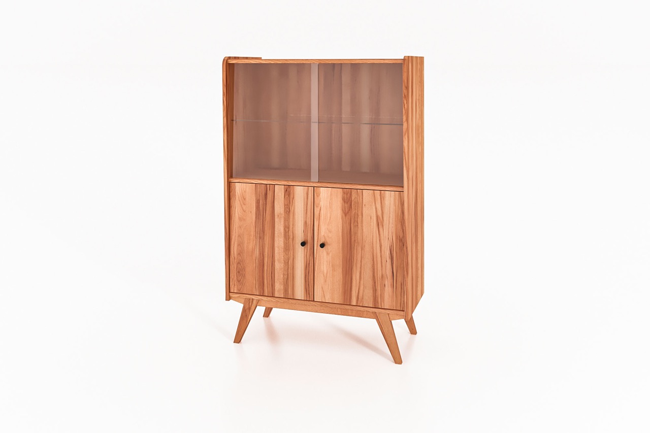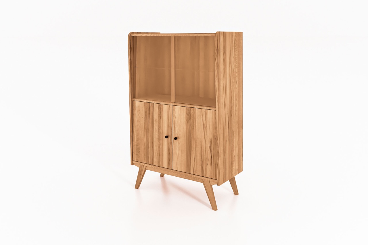 Nederste del med to tredører skjuler det du ikke vil ha stående fremme. Det tidløse uttrykket, de skrå benene og det massive treet i eik eller bøk gjør dette skapet til et karakterfullt møbel som passer perfekt i både stue, spisestue eller kjøkken.
